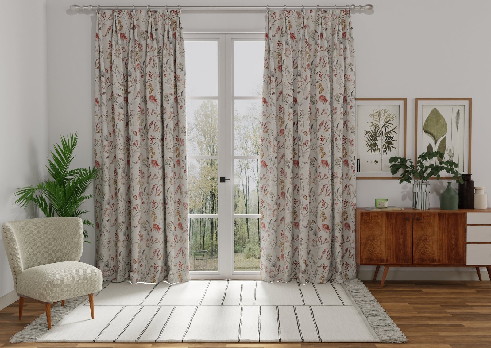 This material is now available to order as made to measure roman blinds, fully lined curtains, and accessories.