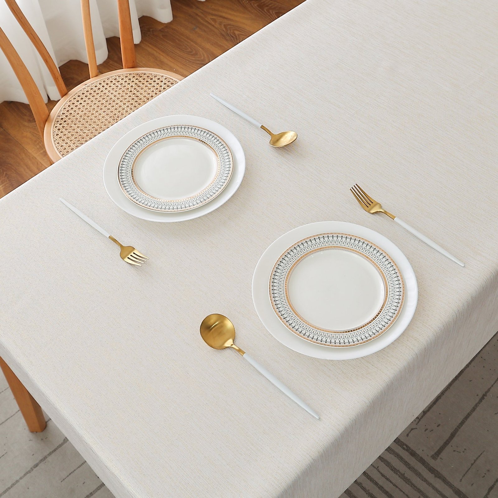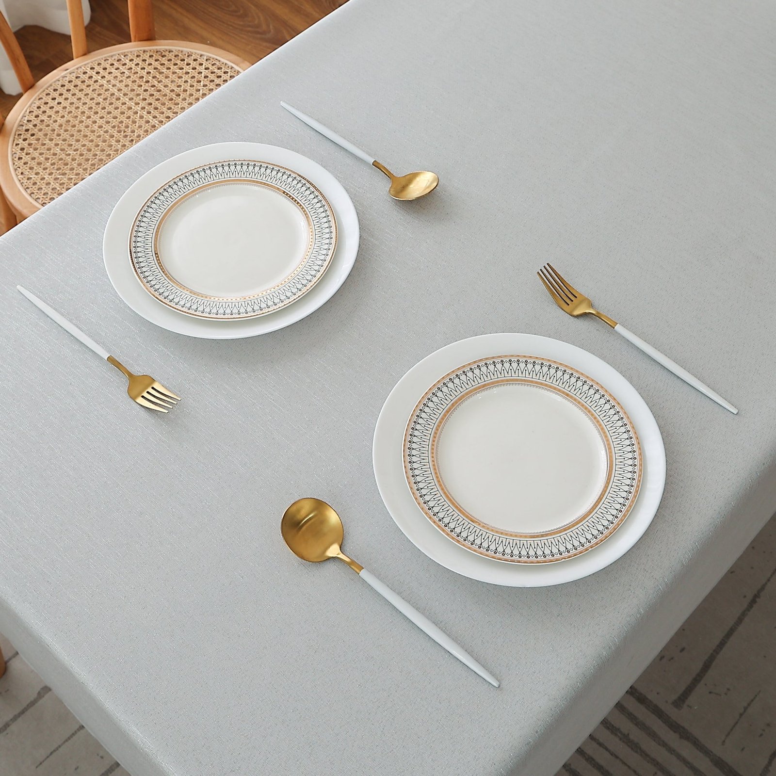 - Different Color Combinations of Tablecloth: (Grey with Silver Glitter Thread), (White with Silver Glitter Thread), (Cream with Beige Glitter Thread), (Gold with Gold Glitter Thread).