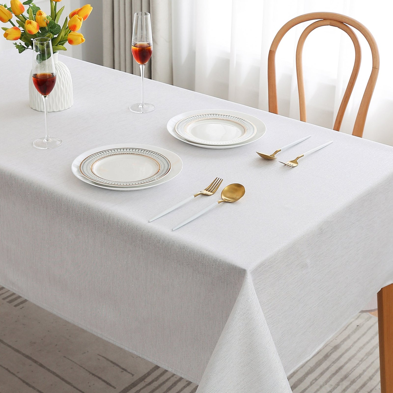 - Elegant Texture: This beautiful table cover looks like solid color at first glance, but it actually has a glittery texture which is simple and exquisite. It helps your table a perfect and ideal decoration for your home and kitchen. It’s a smart choice for Christmas, weddings, birthdays, and meeting parties.
