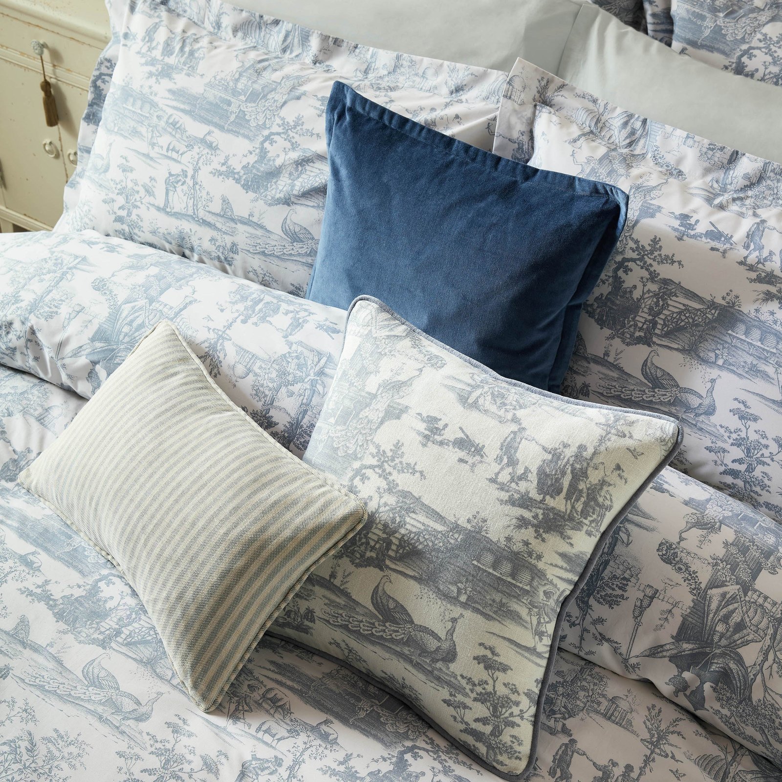 Laura Ashley Braysmith Toile Duvet Cover Bedding Set Chambray Blue