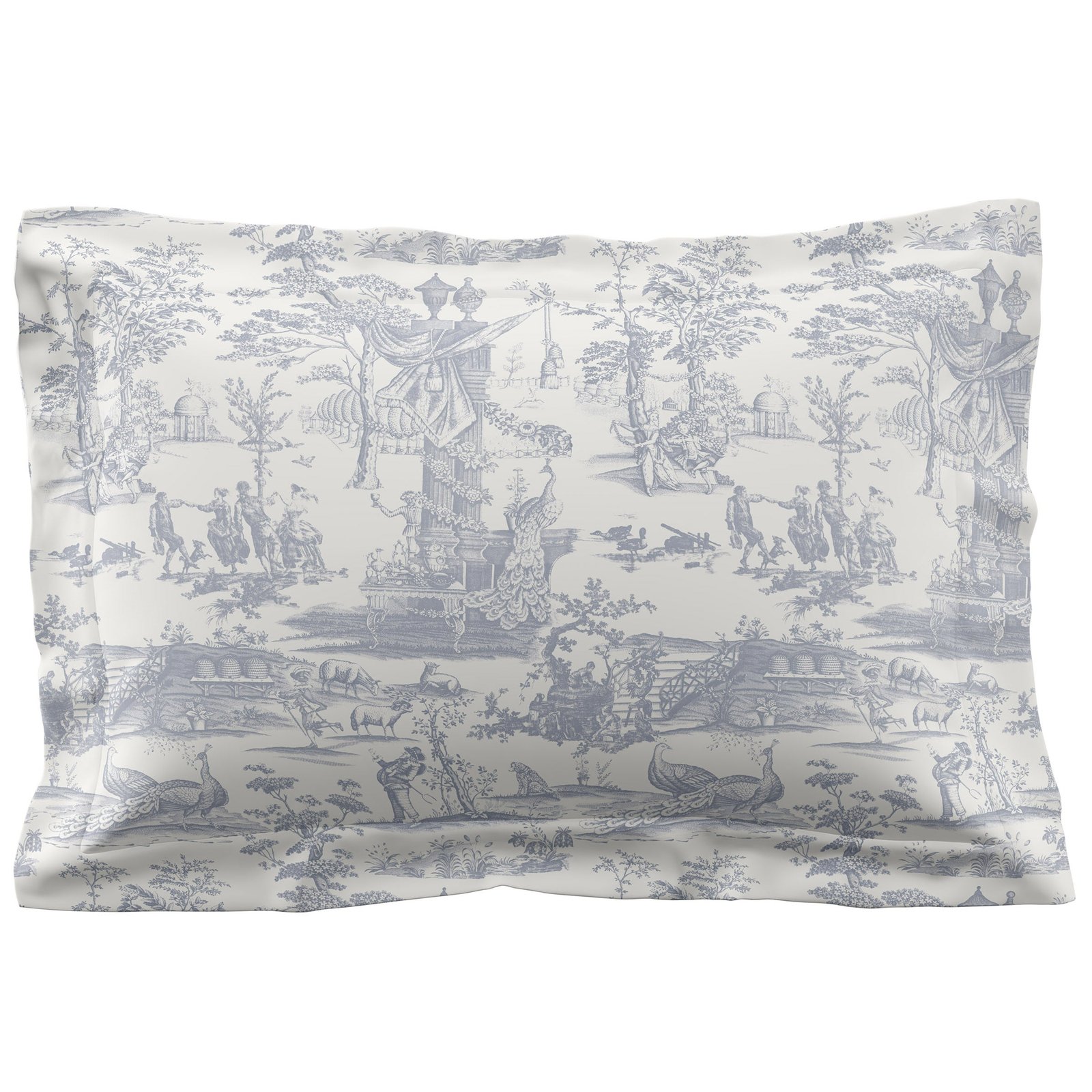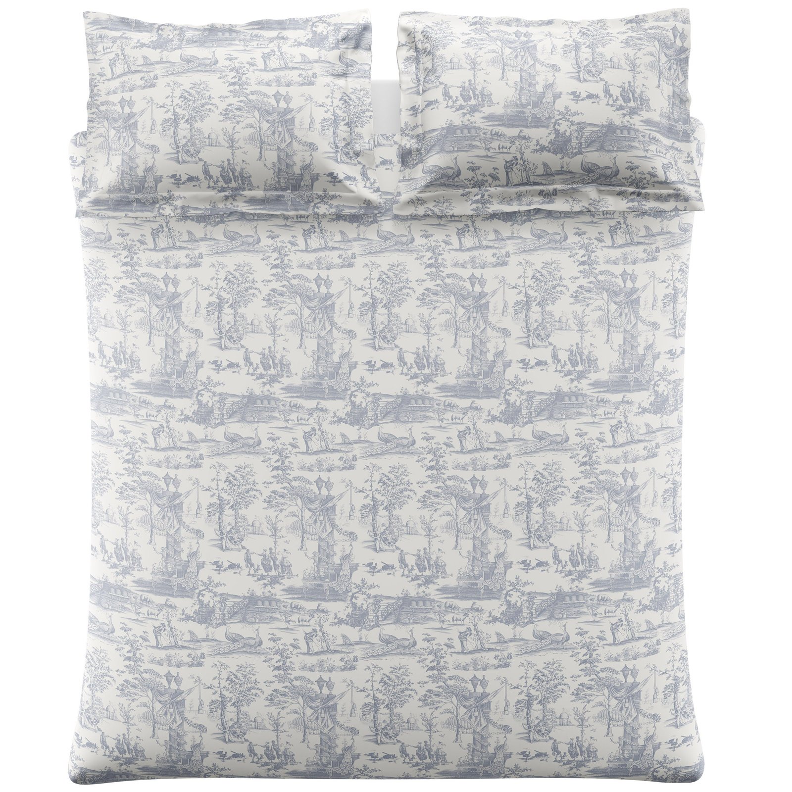 Inspired by various toiles from 1994 in the Laura Ashley archive, this typical late 18th century French landscape print depicts a beautiful country scene with people dancing and wandering peacocks and sheep. Printed onto a 100% 200TC Cotton Percale base. Available in sizes: single set, double set, king set and Super king set. Set includes duvet cover and 2 pillowcases (Includes 1 pillowcase with single set). Pillowcases are available to purchase separately.