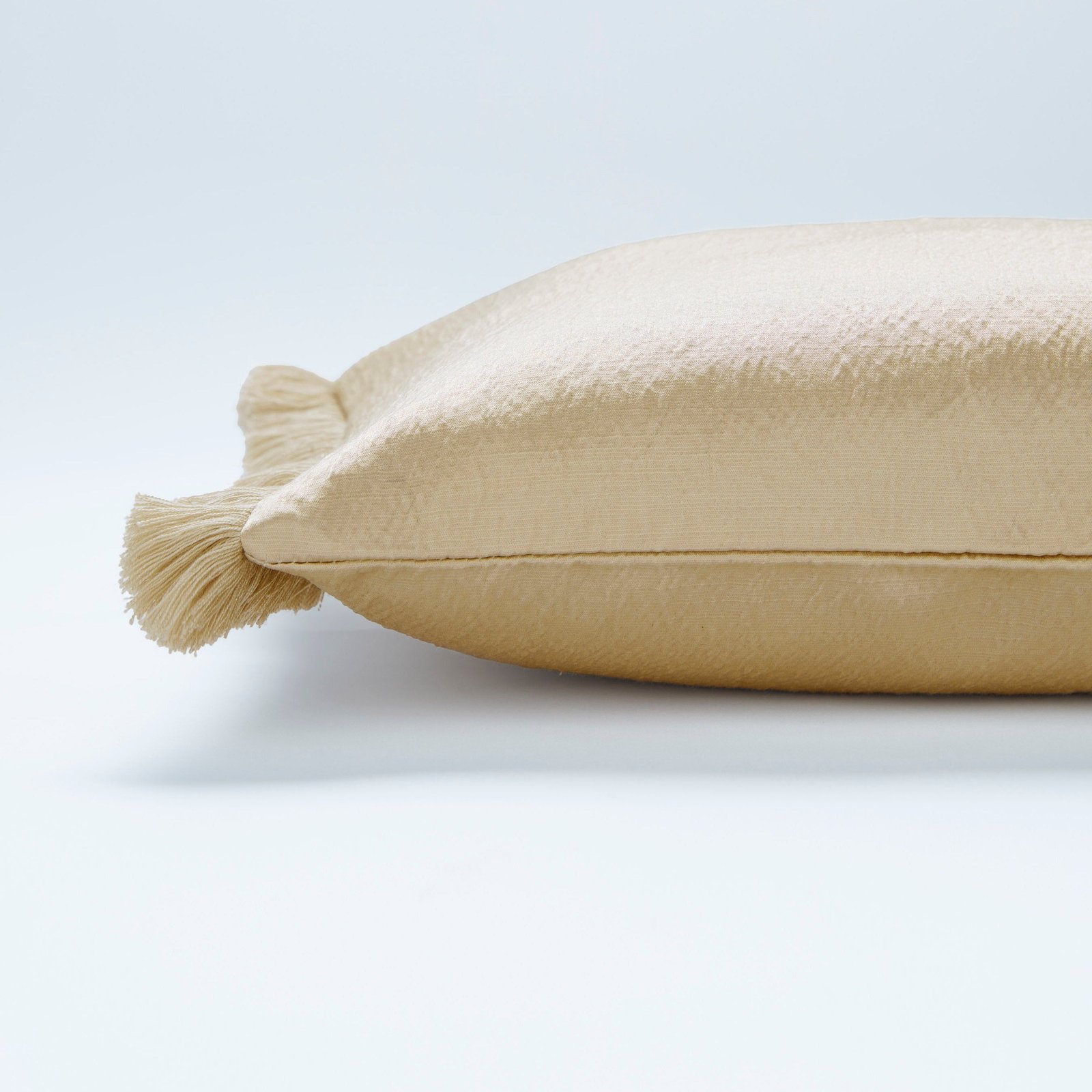 The Carys cushion introduces a luxurious touch to any room with its crinkle satin texture. Showcasing refined fringe detailing on both sides, it brings classic Laura Ashley sophistication to your décor. Available in soft Natural, Sage Green, and Mustard, this boudoir cushion is filled with a premium fine denier recycled fibre pad that mimics the softness of feathers.