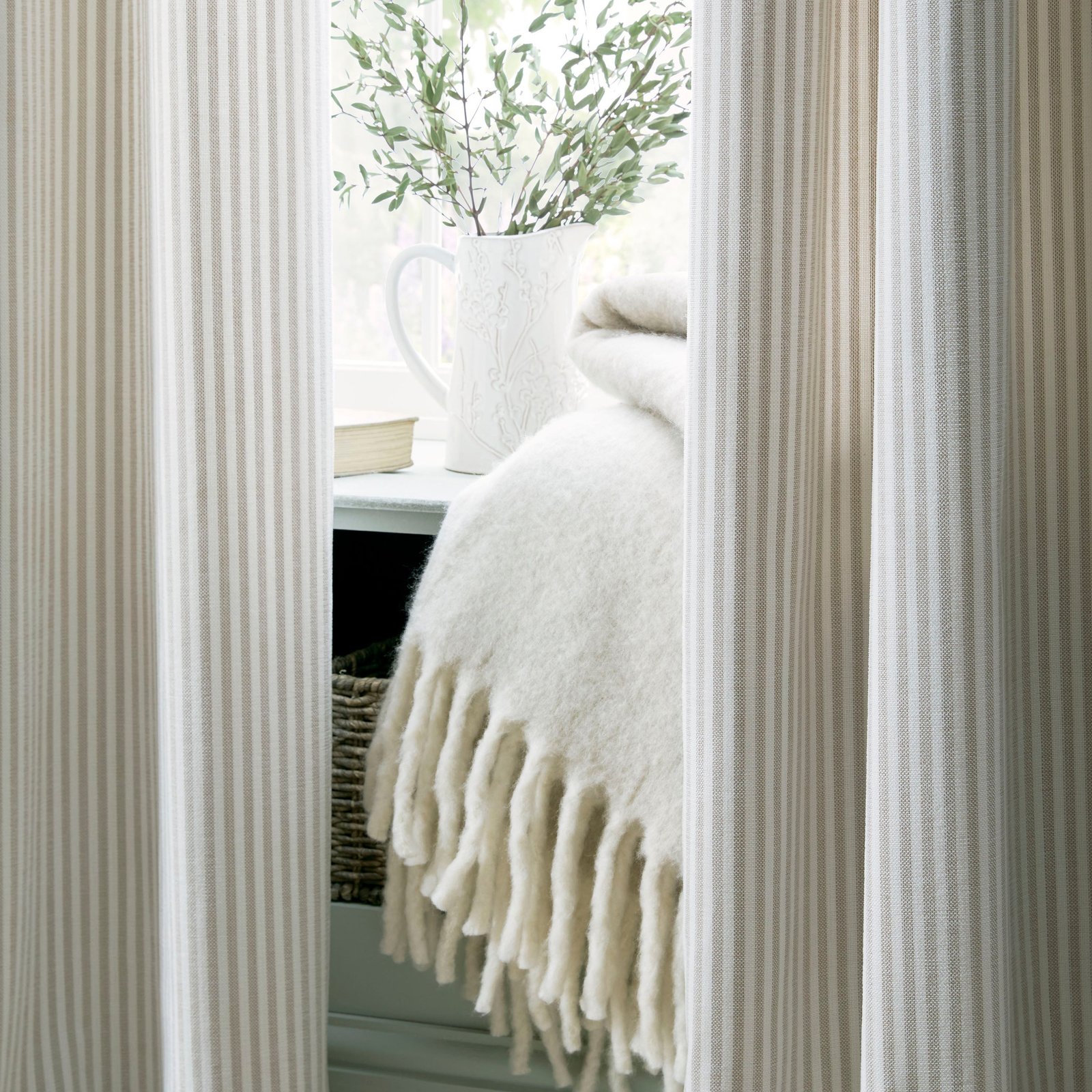 This refined Chenille stripe pattern from Laura Ashley features lined eyelet curtains that bring a graceful accent to any room, seamlessly enhancing both modern and classic interiors. Ideal for upgrading your living room, bedroom, or workspace. Made from 50% cotton and 50% polyester lining.Â
