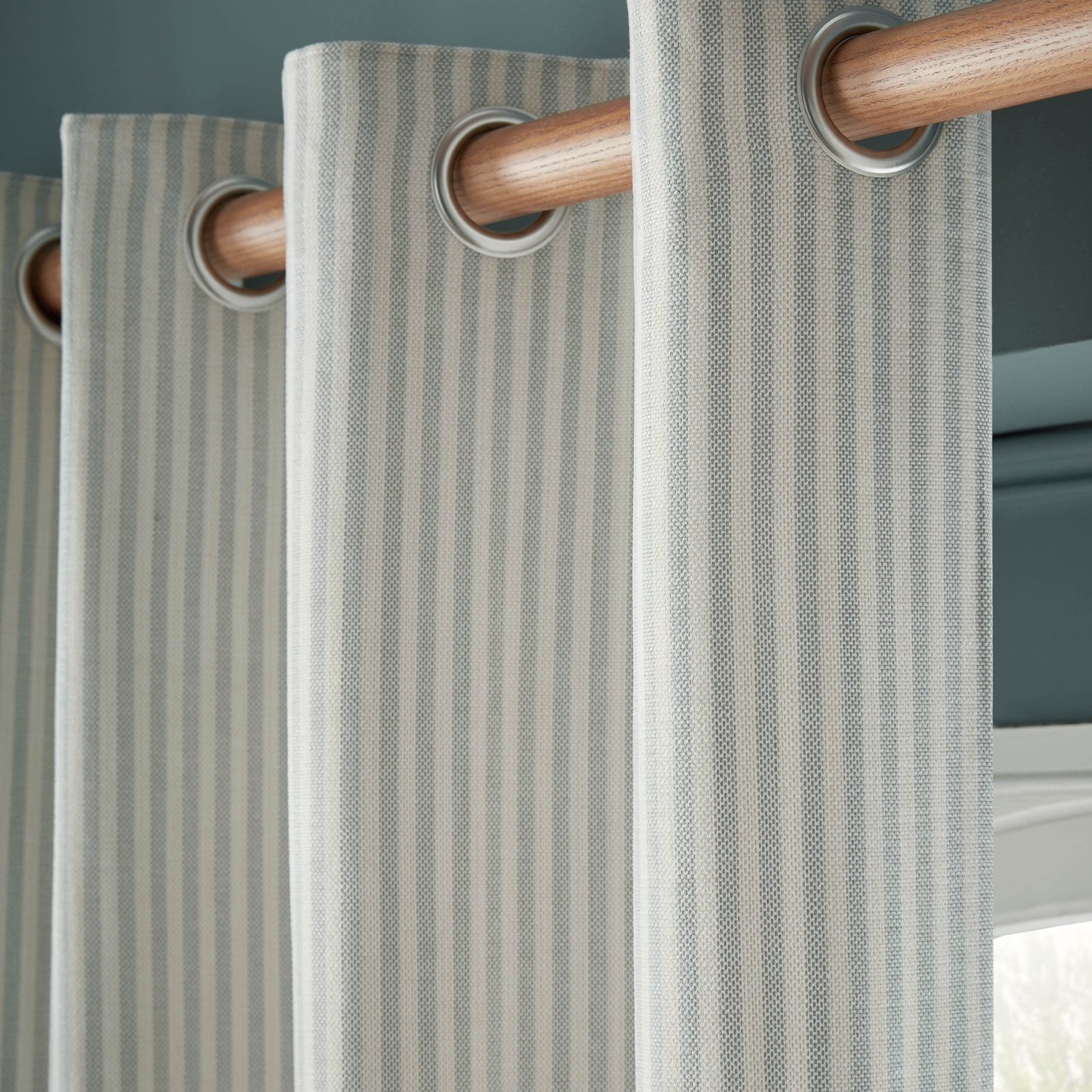 Laura Ashley Cornish Chenille Stripe Ready Made Eyelet Curtains Slate Blue