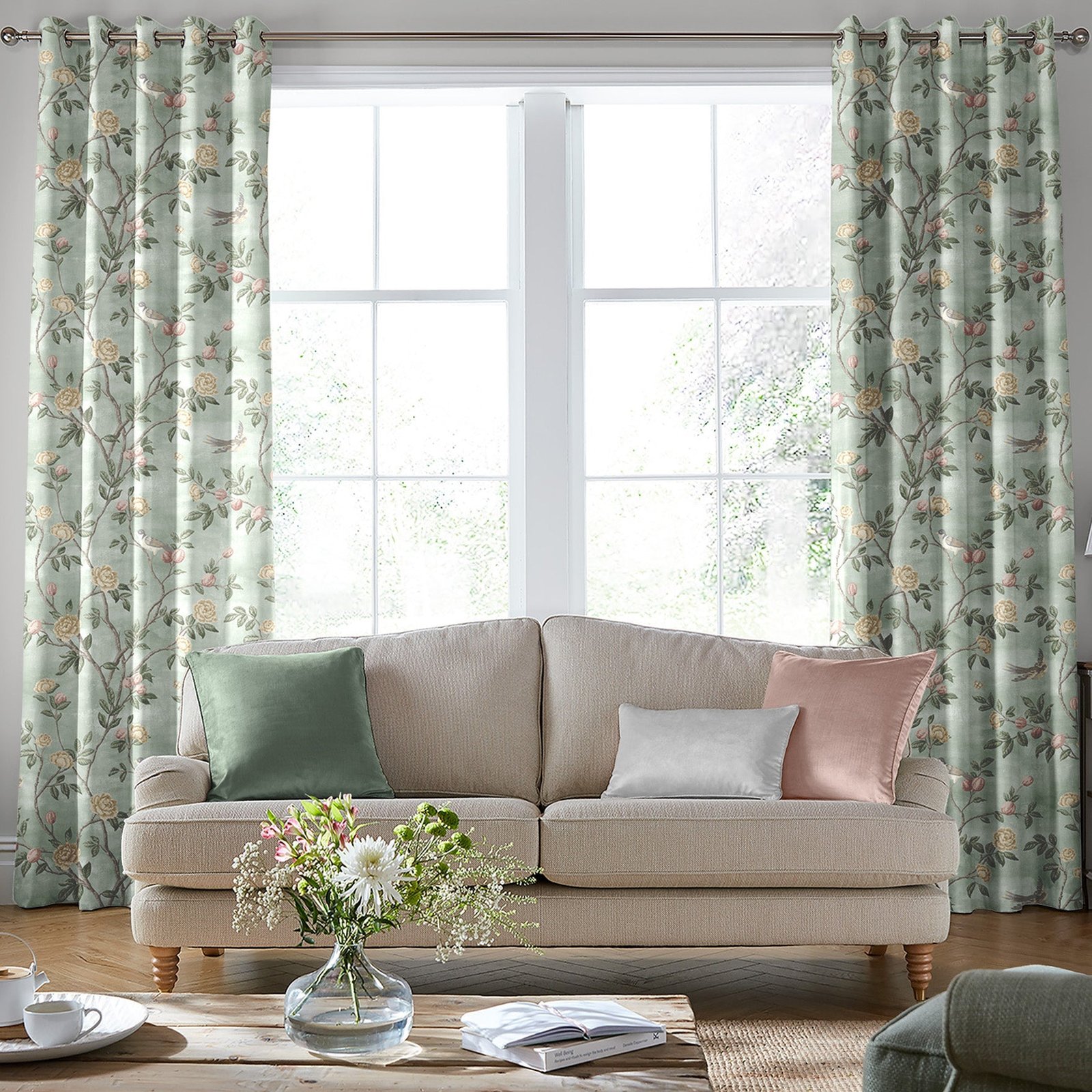 Laura Ashley Eglantine Made to Measure Curtain Smoke Green