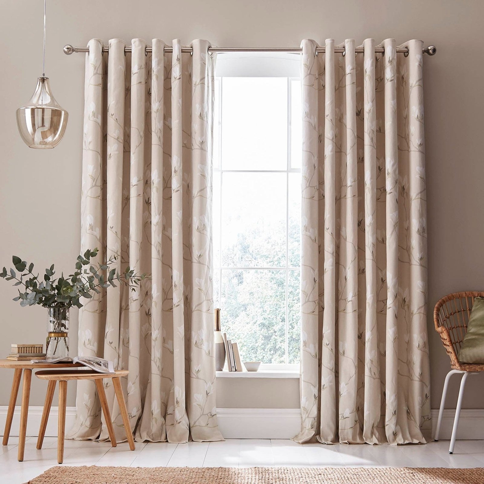 Laura Ashley Magnolia Grove Ready Made Eyelet Blackout Curtains Natural