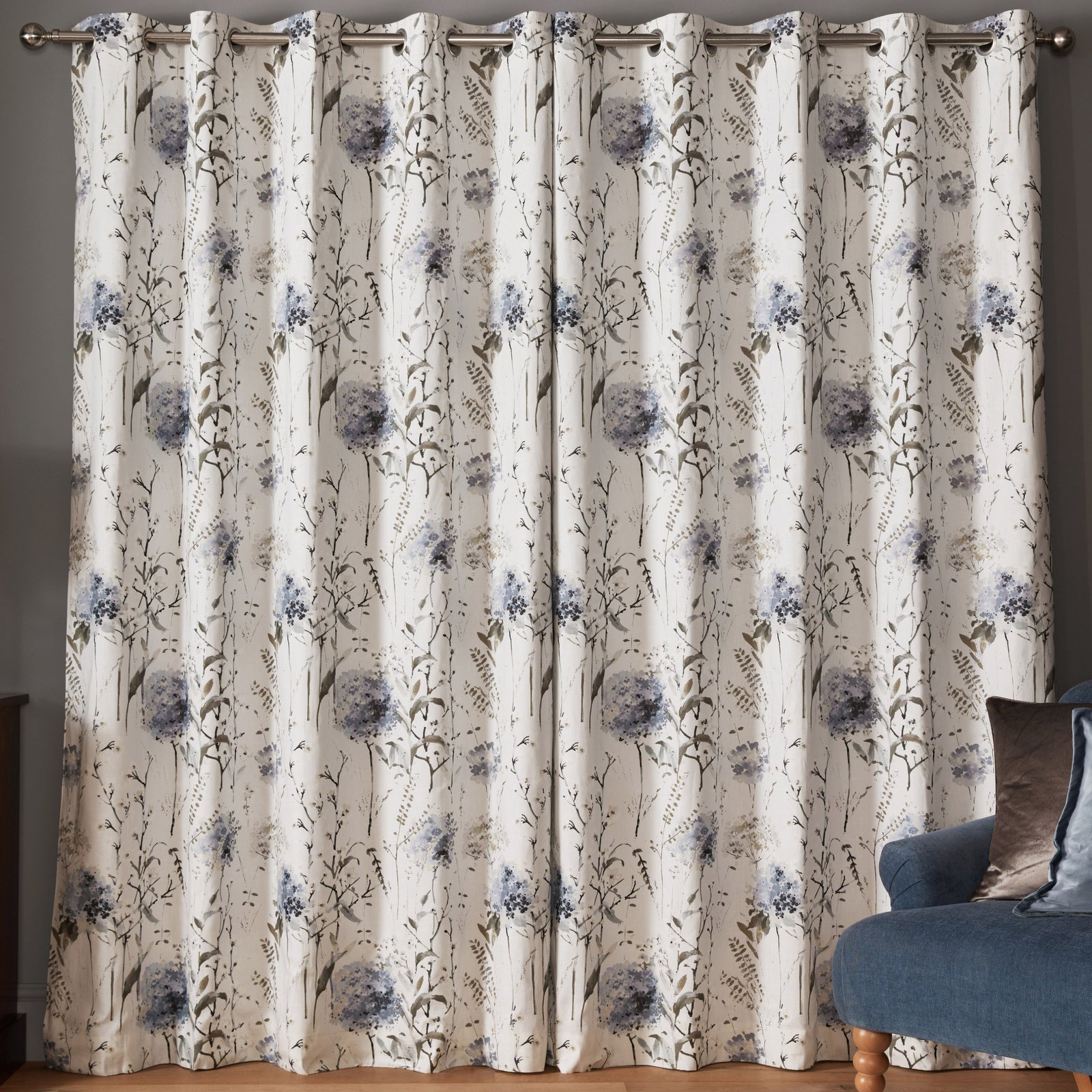 Laura Ashley Pallington Bloom Ready Made Eyelet Blackout Curtains Smoke Blue