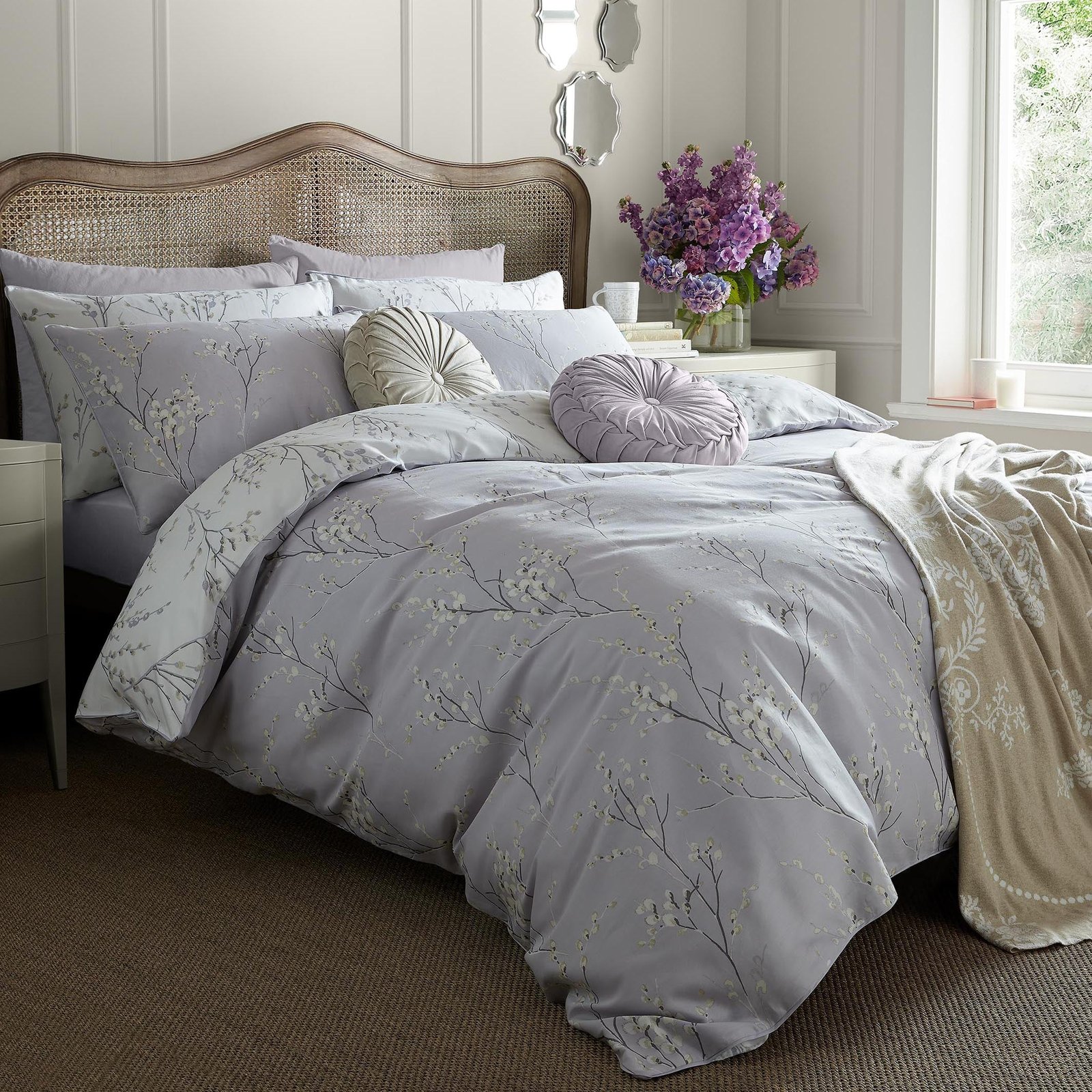 The well-loved Pussy Willow floral design adds a refined and refreshing touch to your interior. Made from 100% cotton sateen with a 200 thread count, these pillowcases feature a delicate print in a soothing Lavender shade, enhanced by elegant piped edges.