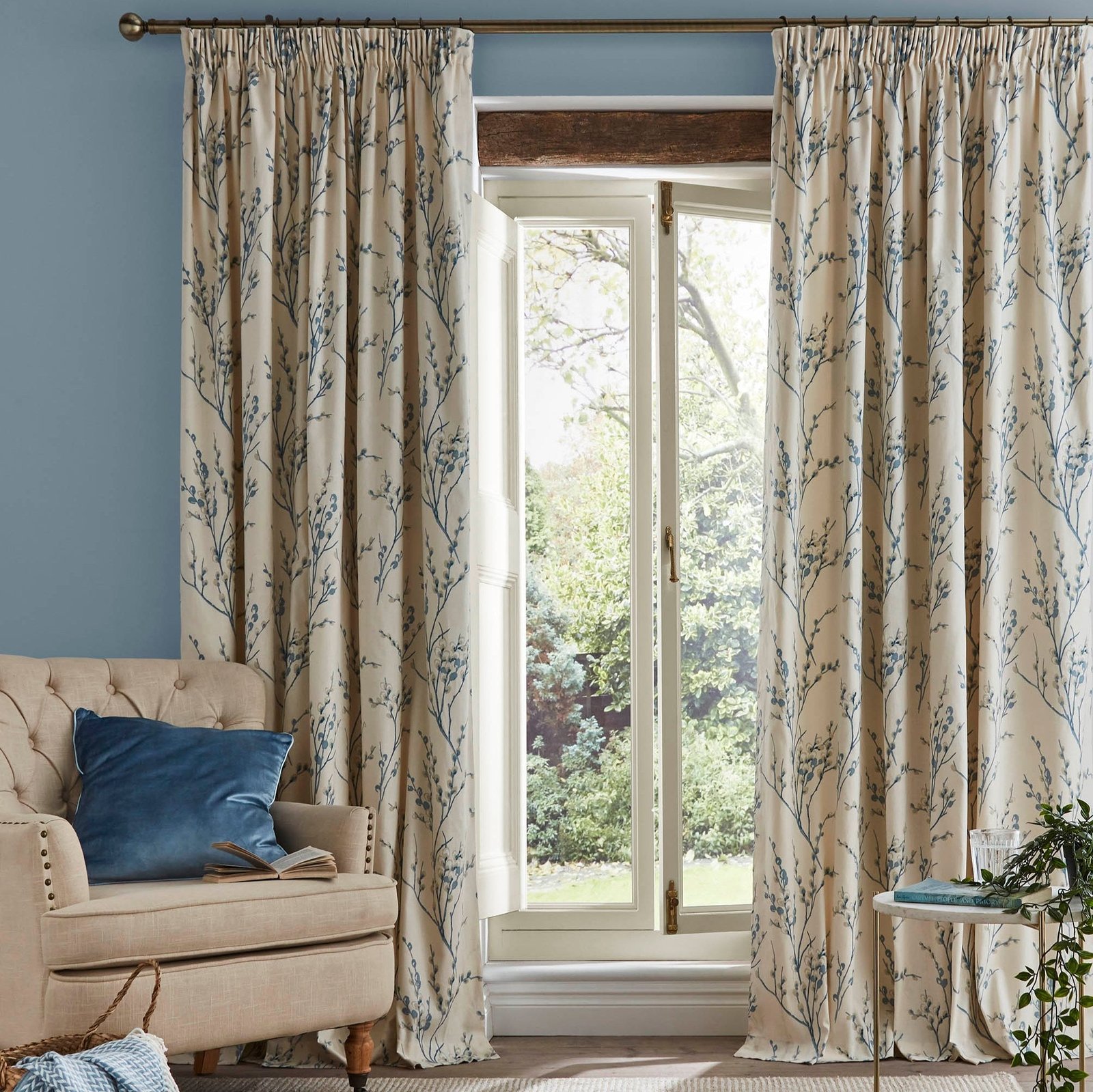 Ashley Wild, Ashley Wilde Collection, Blue & Teal Bedding, Curtains & Window Treatments, Laura Ashely, Laura Ashley Curtains, Pencil Pleat Curtains, White Bedding