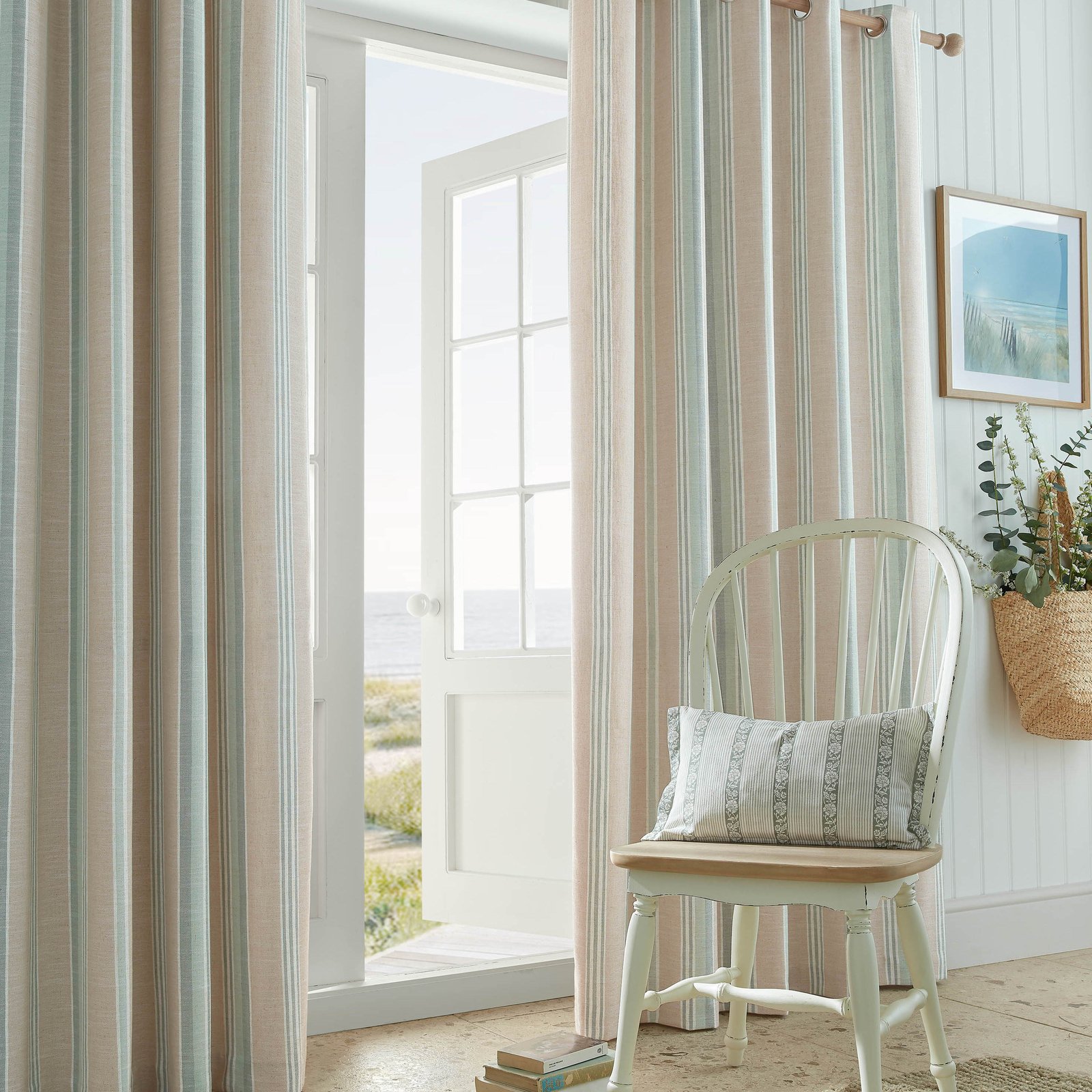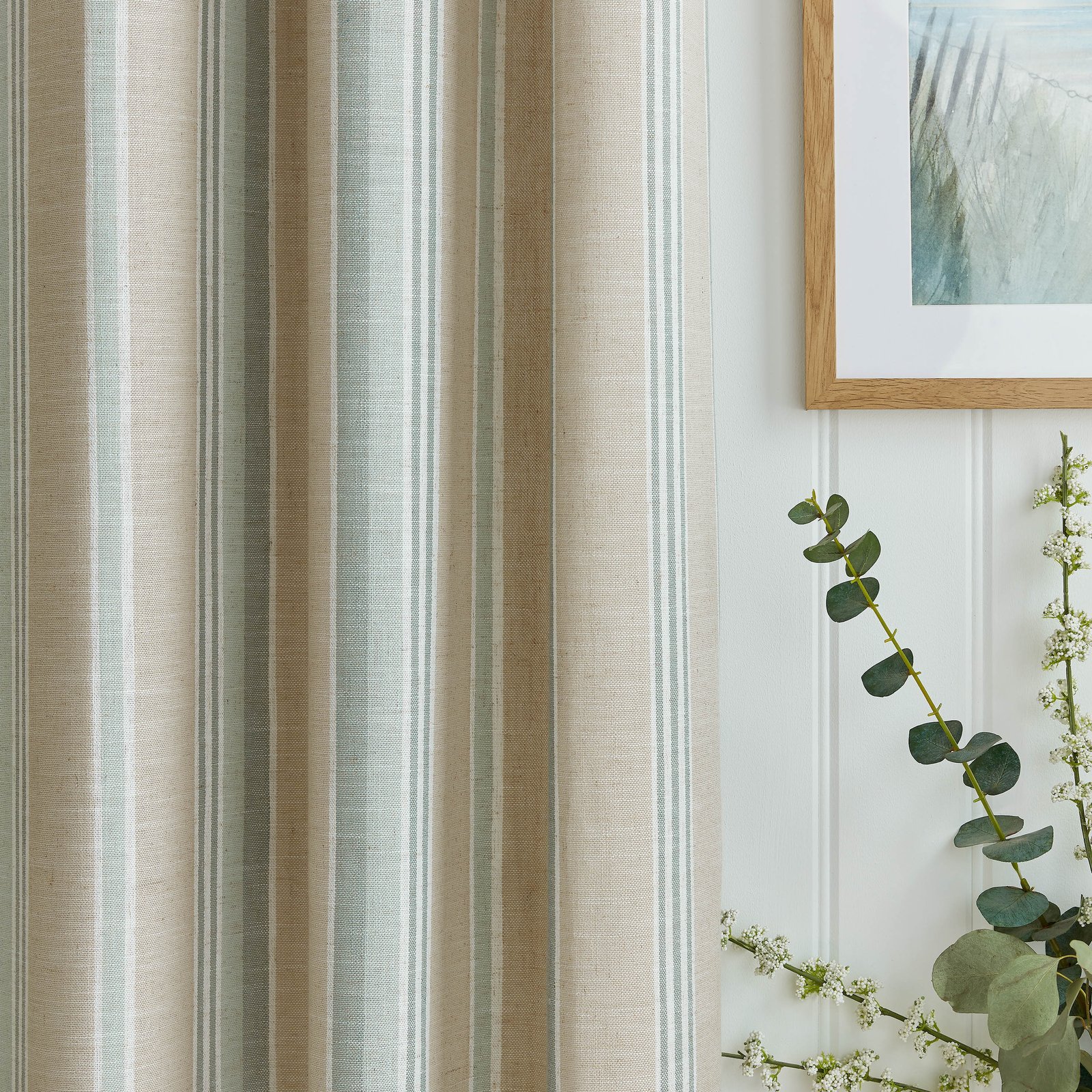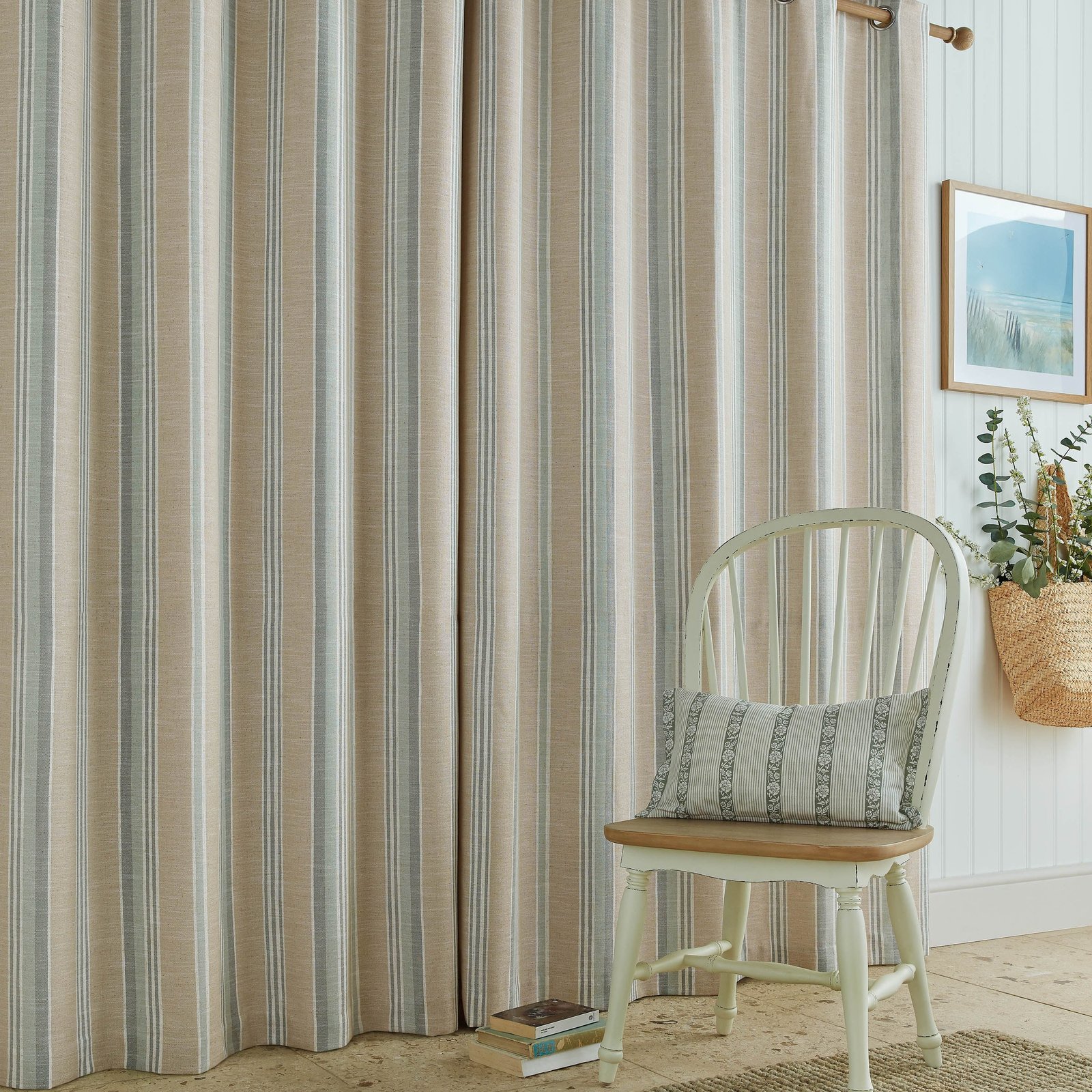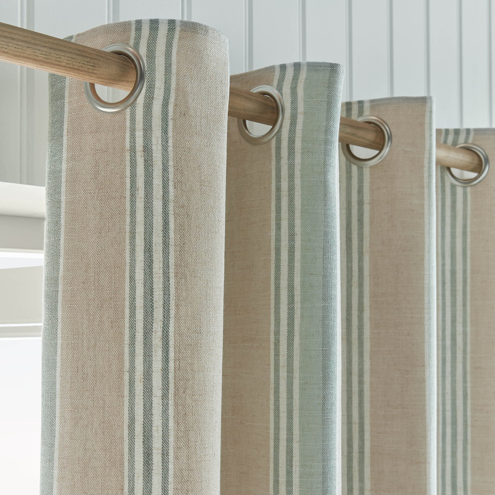 Laura Ashley Wickham Stripe Ready Made Eyelet Curtains Sage Natural