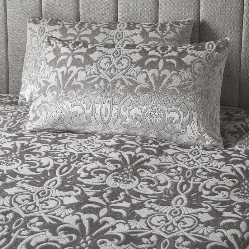 A stunning damask pattern created by the master of interior design in this seasons must have colour pallette is woven into a sumptuously soft velvet fabric to stunning effect to create this luxurious duvet cover set that will enhance any boudoir.