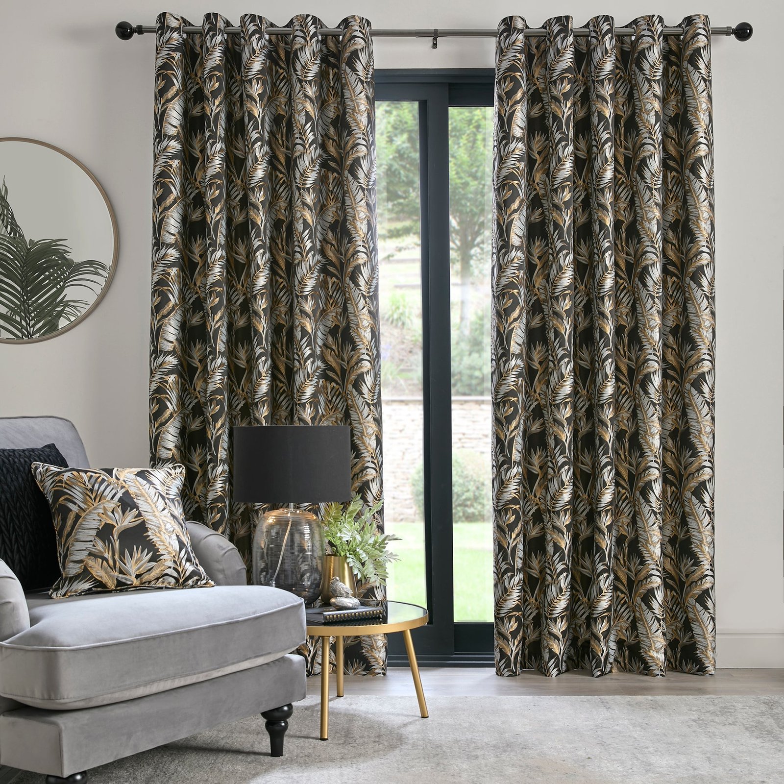 Laurence Llewelyn-Bowen Paradise Palm Jacquard Ready Made Eyelet Curtains Black