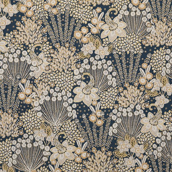 The Millefiori fabric features a finely woven floral jacquard design, displaying a harmonious arrangement of tonal blossoms. As a distinguished piece from the Linda Barker Floral Garden collection, this high-quality textile enhances interiors with its elegant and sophisticated appeal.