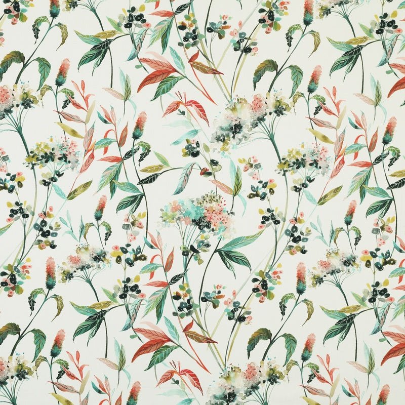Achillea is a common weed found across the UK in countryside meadows and inner-city green spaces. I have it in my lawn and in the flower beds. On this patterned fabric it is depicted with other simple native plants to create a lovely joyful, flowing pattern. Perfect for curtains.