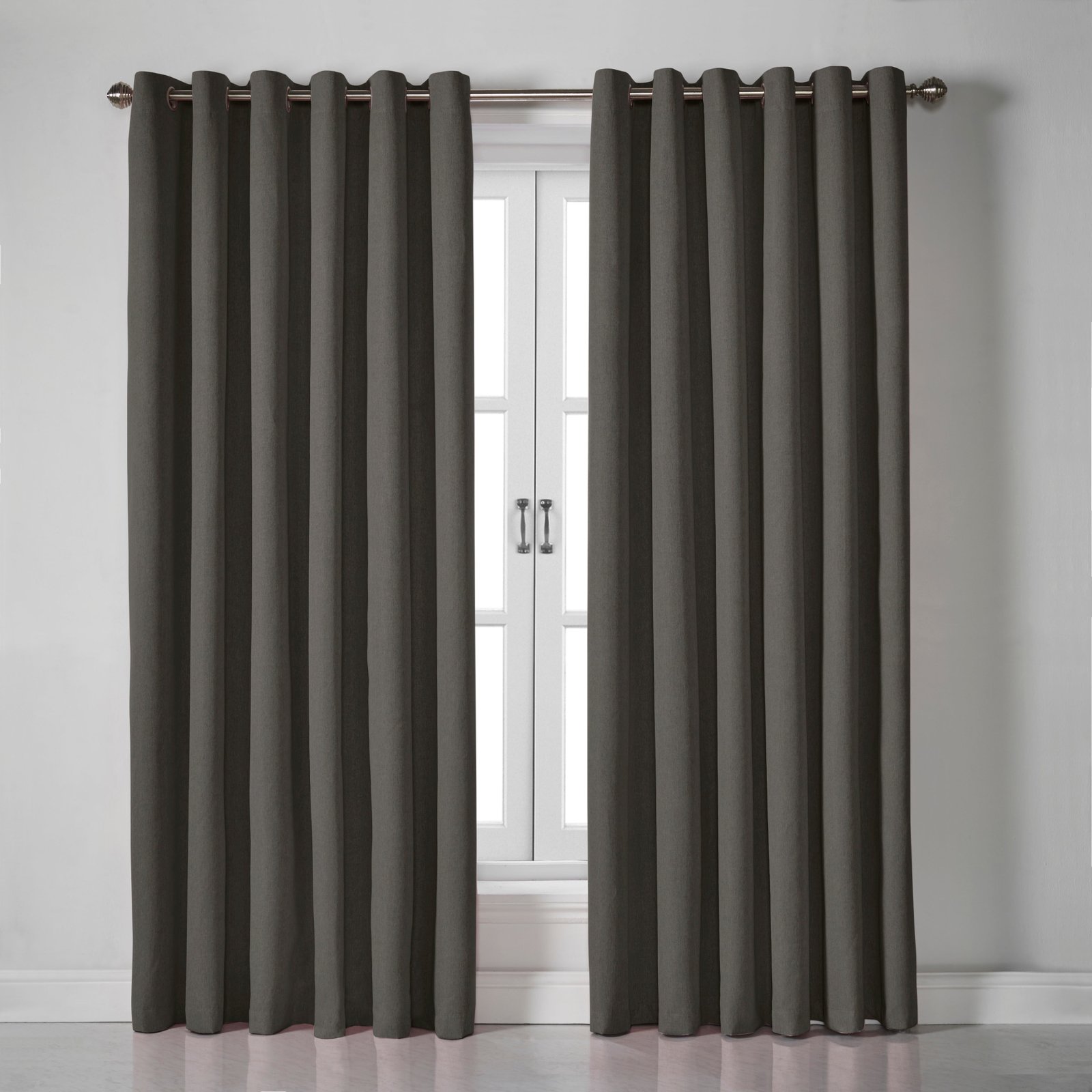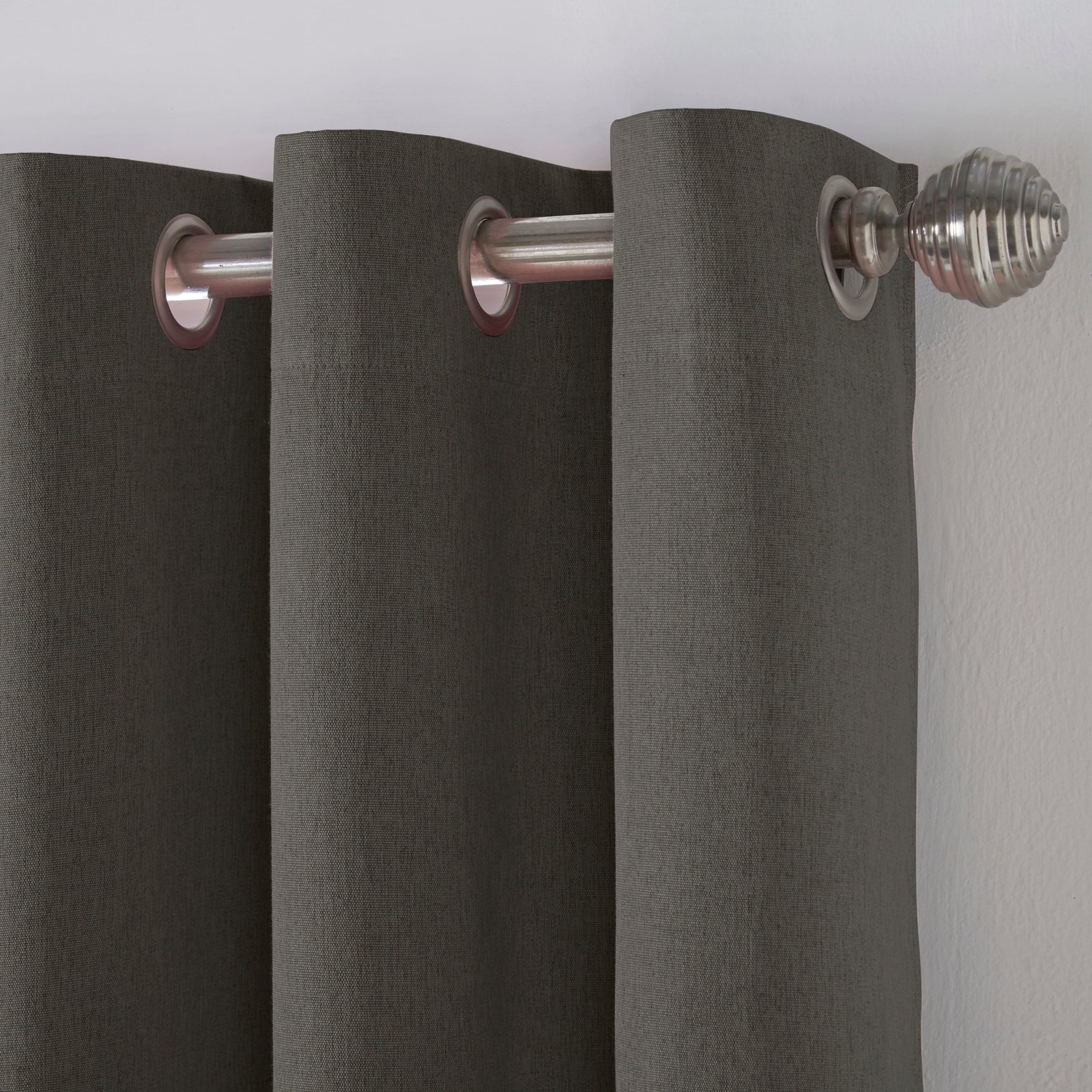 Linen Look Blackout Ready Made Eyelet Curtains Grey