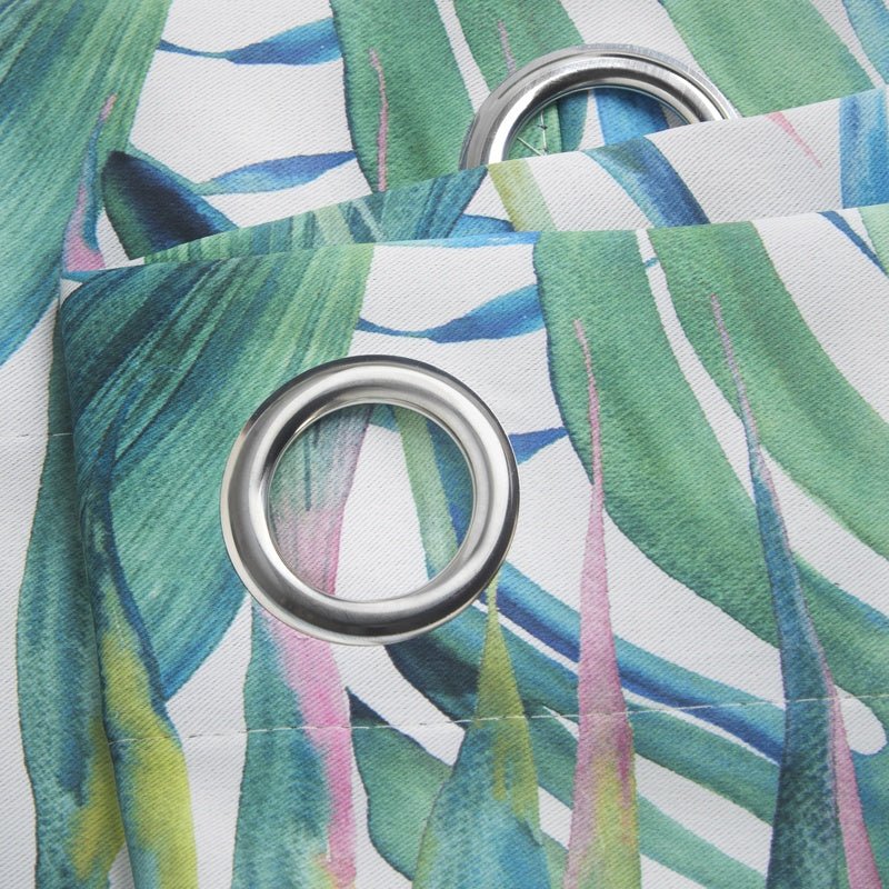 These curtains feature a bold, tropical palm leaf printed design set against a neutral background. Triple weave technology will keep out up to 95% of light, without the need for an extra lining. Made from 100% polyester.