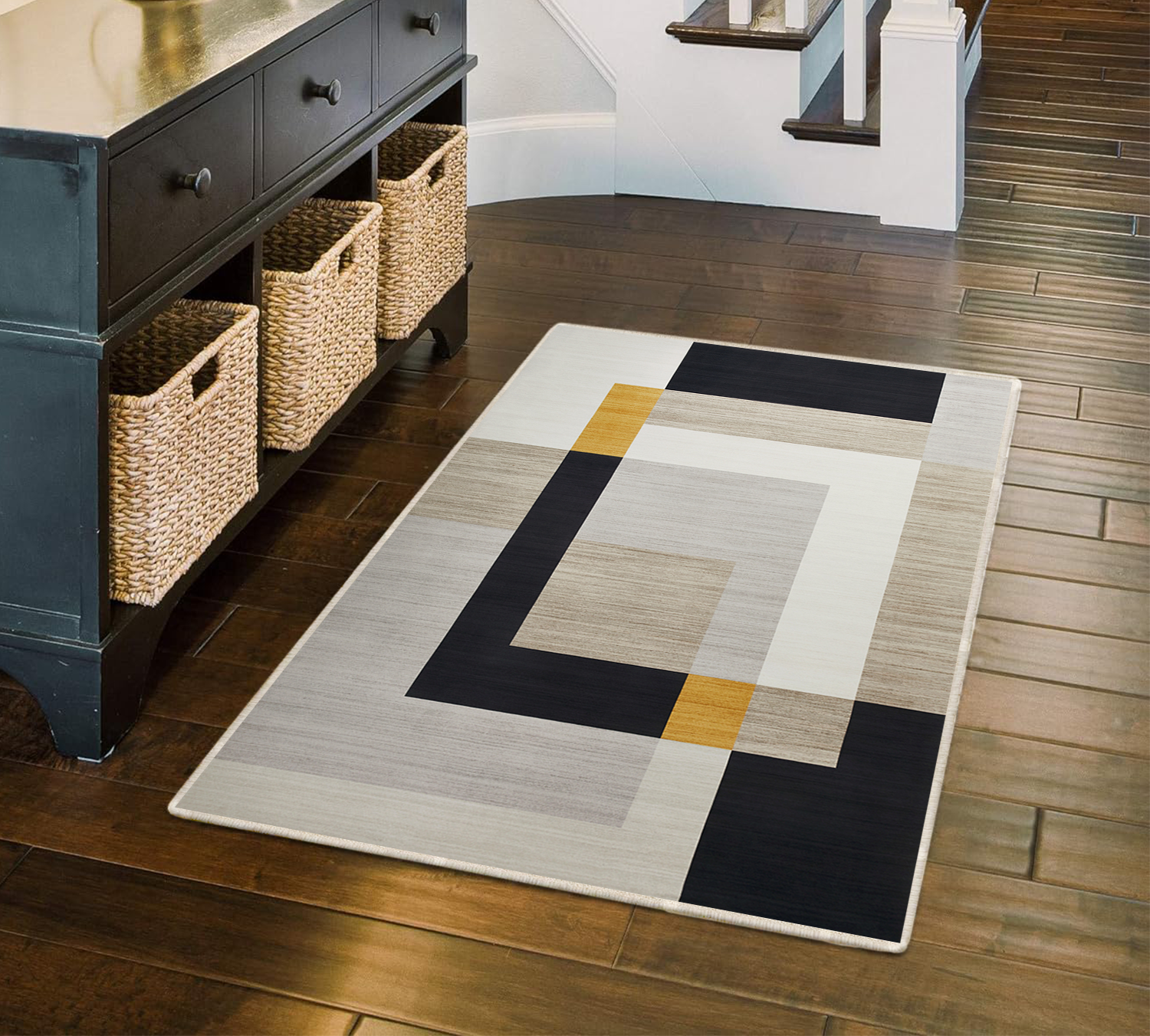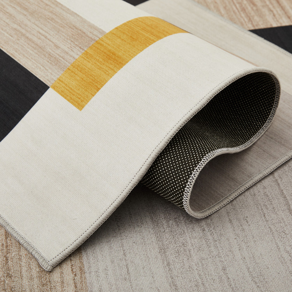 Minimalist Colour Block Rug Grey Black & Mustard Tones