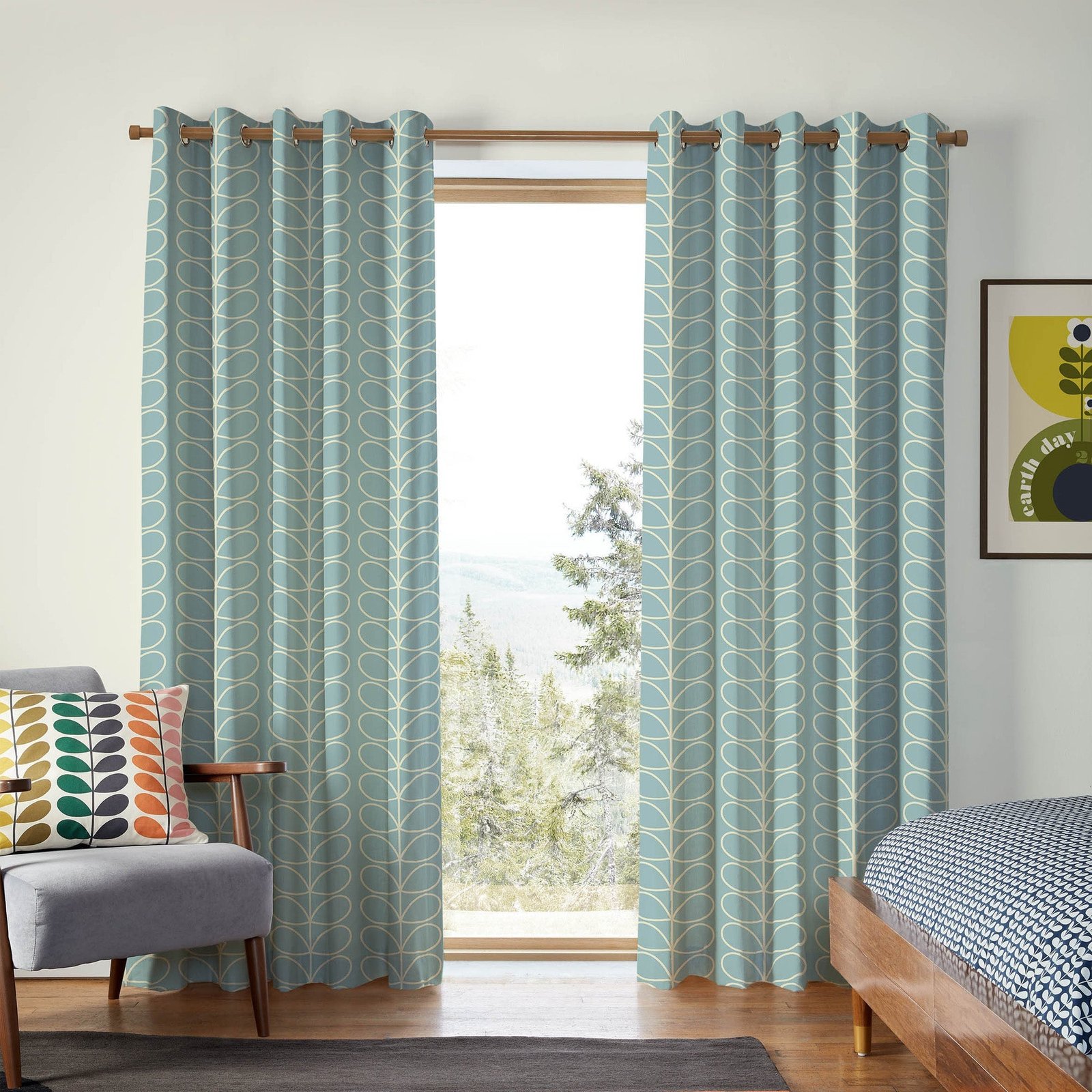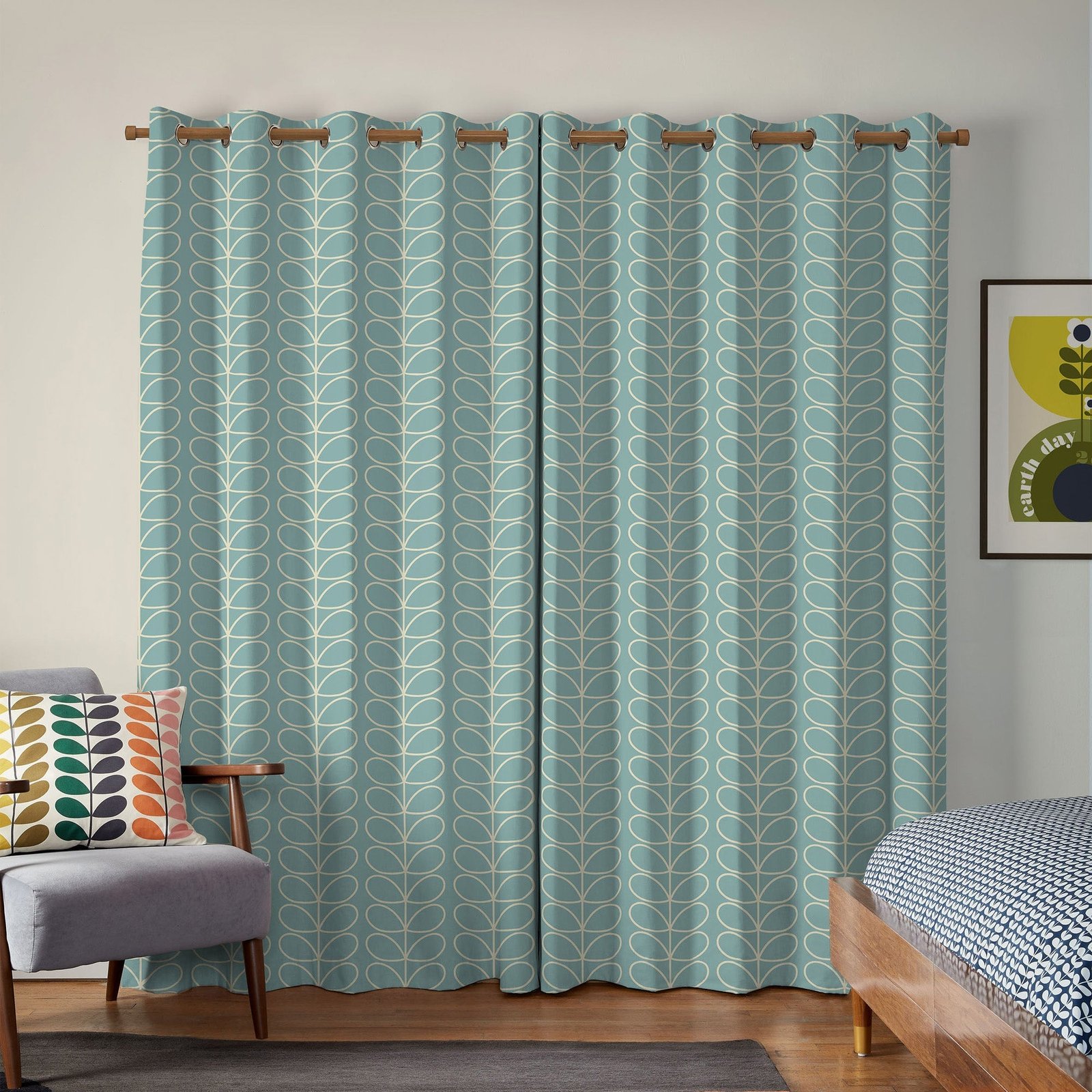 Orla Kiely Jumbo Linear Stem Made to Measure Curtain Aqua