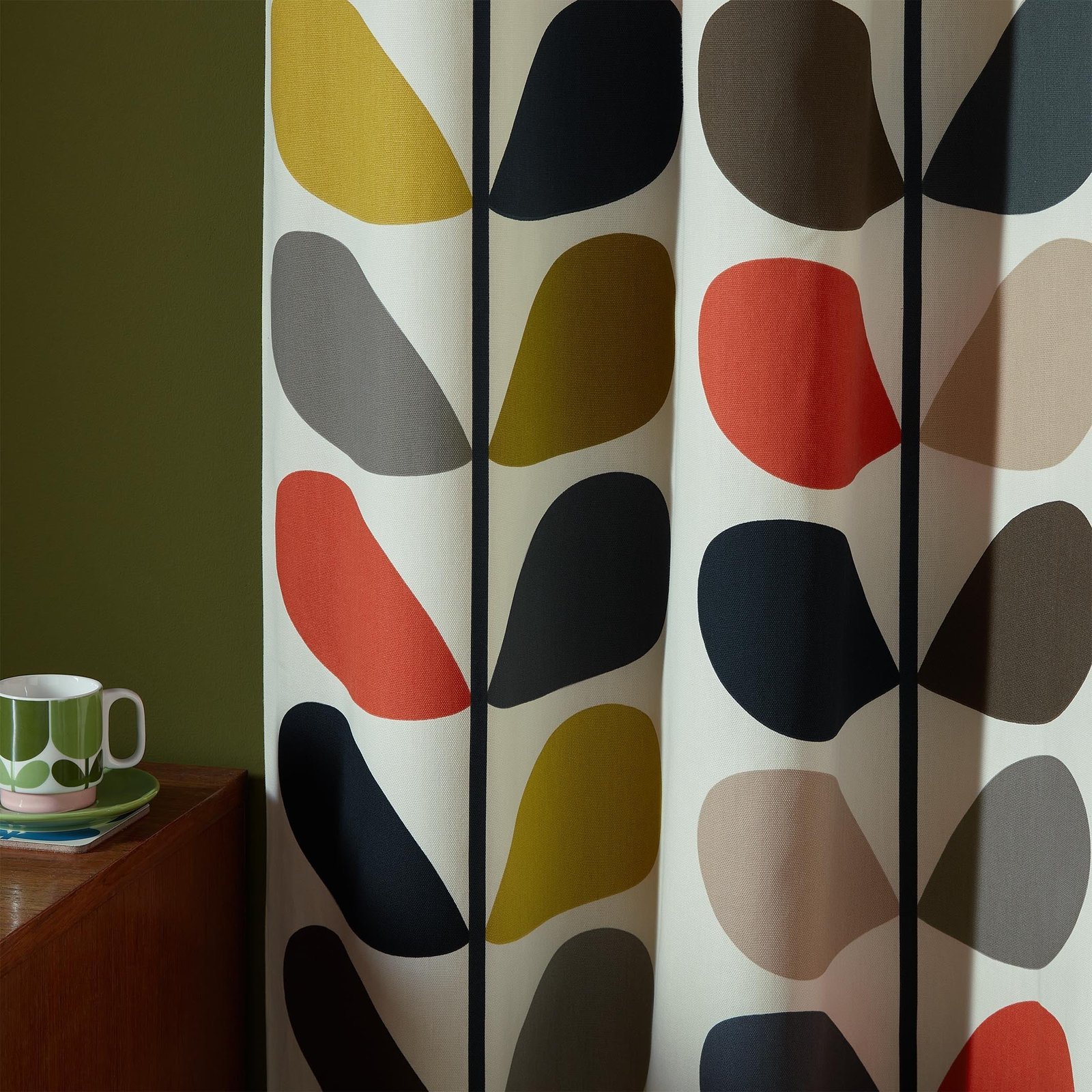Bring colour and pattern to any room with Orla Kiely’s stunning range of ready-made curtains. The Iconic Multi Stem design blends bold, graphic scale, which is both retro and modern at the same time. These instantly recognisable designer curtains have a composition of Face (-100% Cotton), Lining (50% Polyester). 50% Cotton.