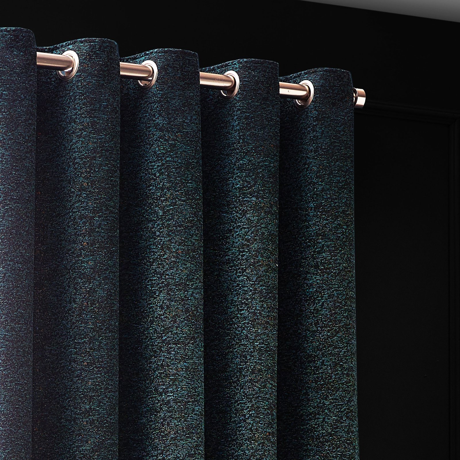 Enjoy the lavish extravagance of the Galaxy eyelet curtains. This design has an opulent, demure appearance and is made of dark-colored yarn-dyed chenille fabric with sparkling golden highlights scattered throughout. These room-darkening lined curtains, which come in a variety of rich jewel tones, look great in gloomy settings.