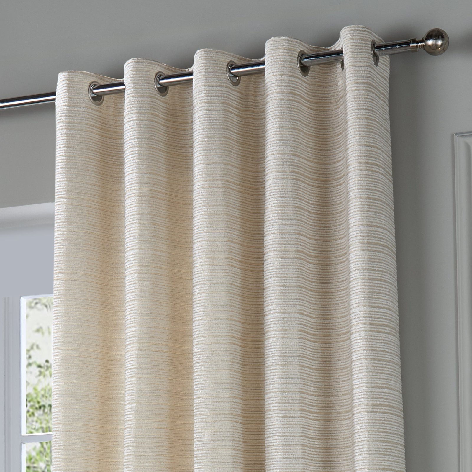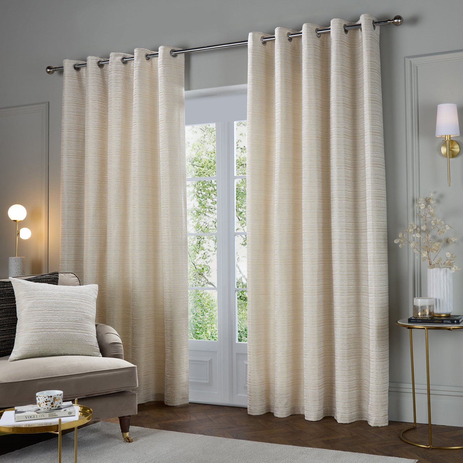 Discover refined elegance with the Jupiter Eyelet Curtains, a masterclass in balancing aesthetic appeal with practical utility. Constructed from sumptuous chenille jacquard interwoven with lustrous pearlescent accents, these ready-made curtains showcase a graceful linear motif suited to diverse interior schemes. The comprehensive lining system provides exceptional light exclusion and thermal insulation whilst preserving a flawless silhouette. Built to withstand the demands of everyday use, the Jupiter Curtains represent a sophisticated investment for those who appreciate quality craftsmanship and timeless design, seamlessly transforming any room into a space of understated refinement and comfort.