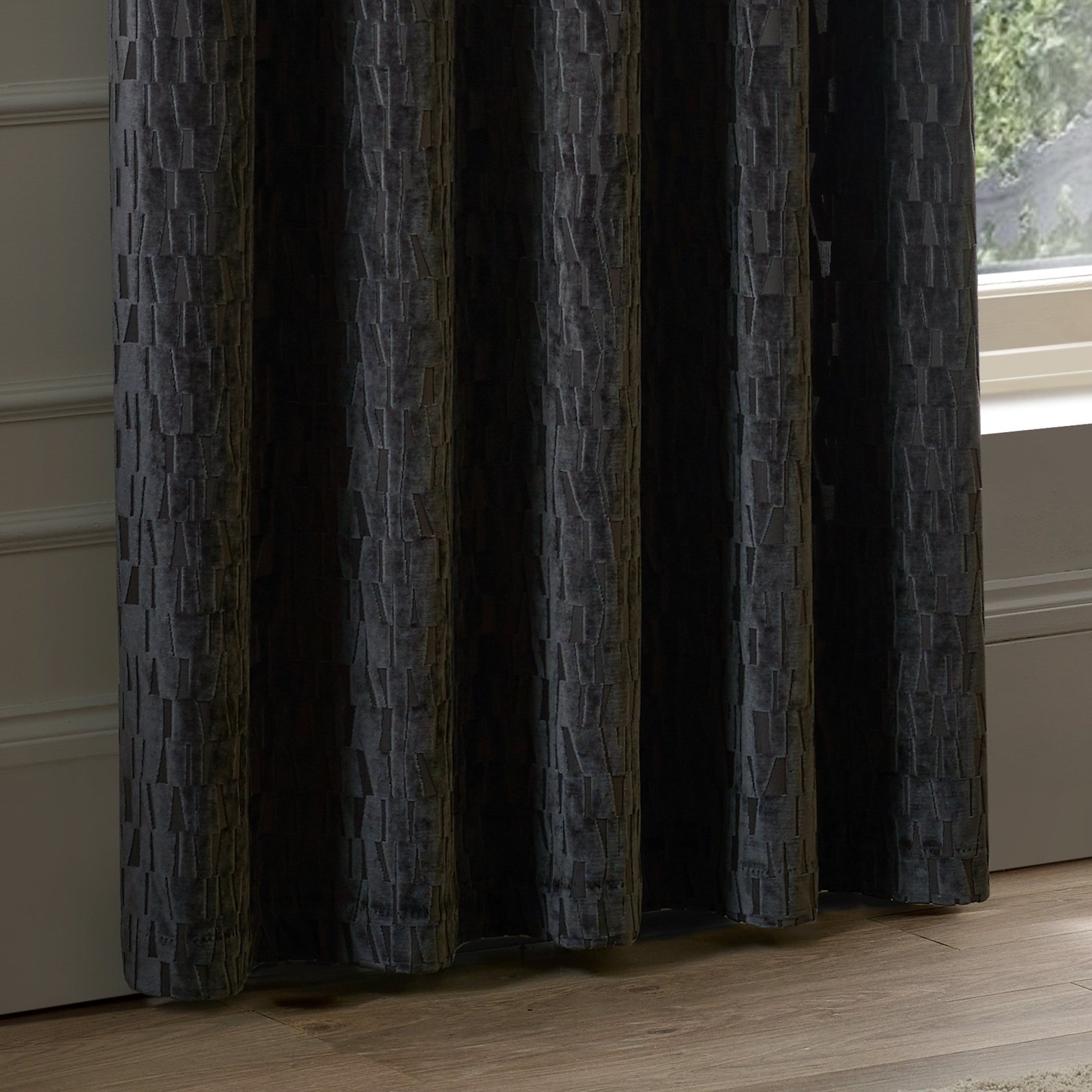 Elevate your interior design with these Manhattan Eyelet Curtains, featuring premium cut velvet in a sophisticated charcoal tone. The textured geometric weave delivers contemporary elegance whilst maintaining versatility across diverse décor schemes. Engineered with a room-darkening lining, these curtains effectively reduce light penetration and bolster privacy without compromising on visual appeal. The fully lined construction guarantees a polished hang, whilst the robust velvet construction promises enduring performance. An investment in both aesthetic refinement and practical window dressing.