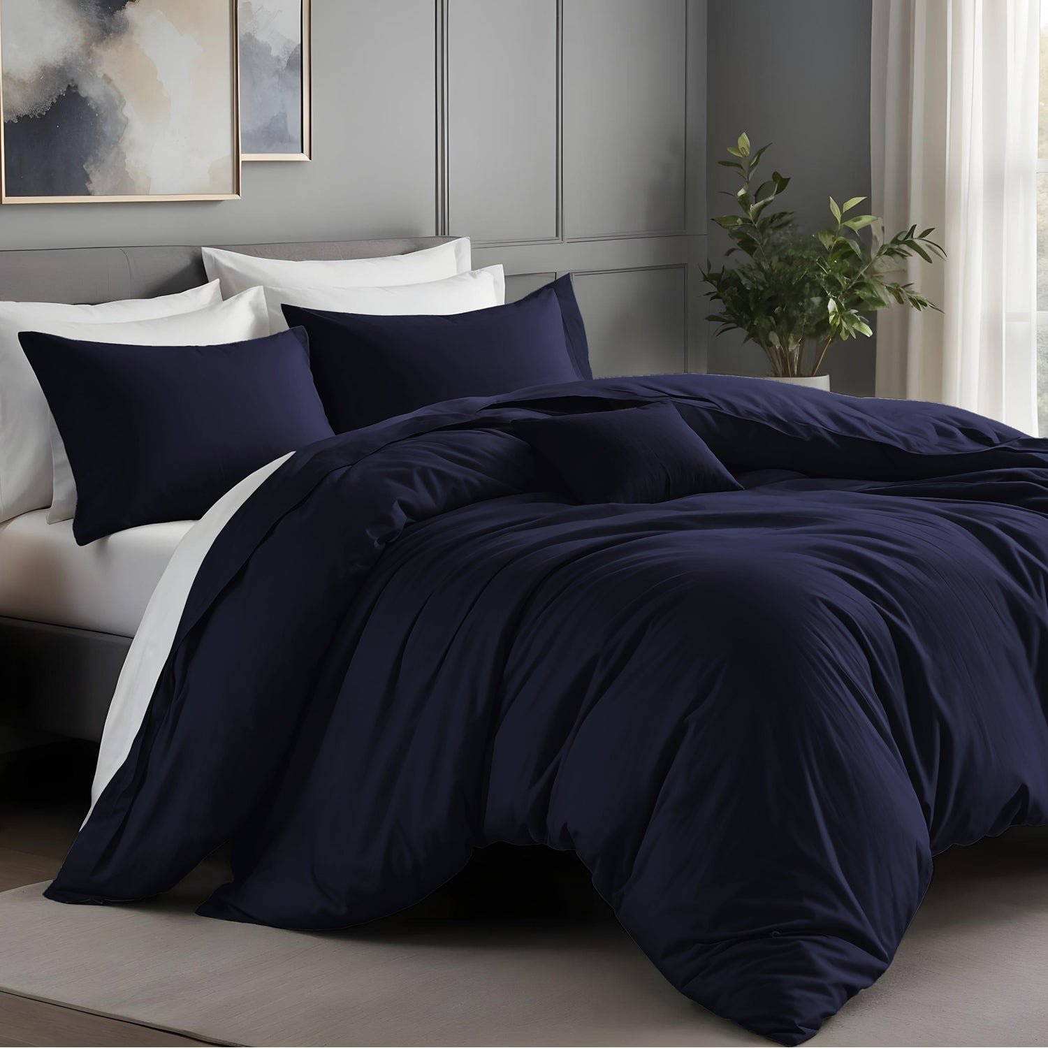 Plain Navy Duvet Cover & Pillowcases