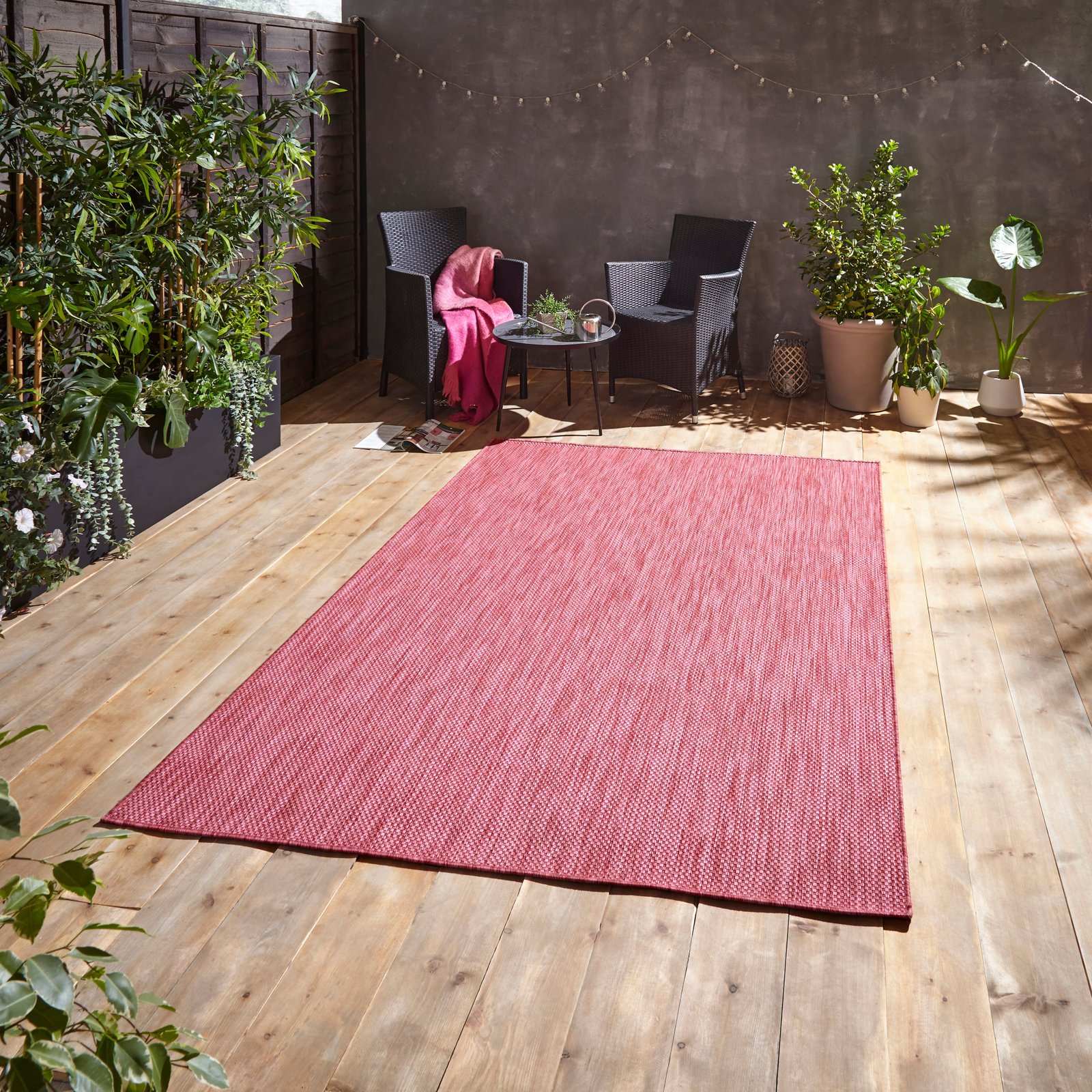 Introducing the POP! Outdoors collection. These colourful flatweave rugs are made from 100% polypropylene and are super durable, guaranteeing they will add a pop of colour to your garden that will be long lasting!