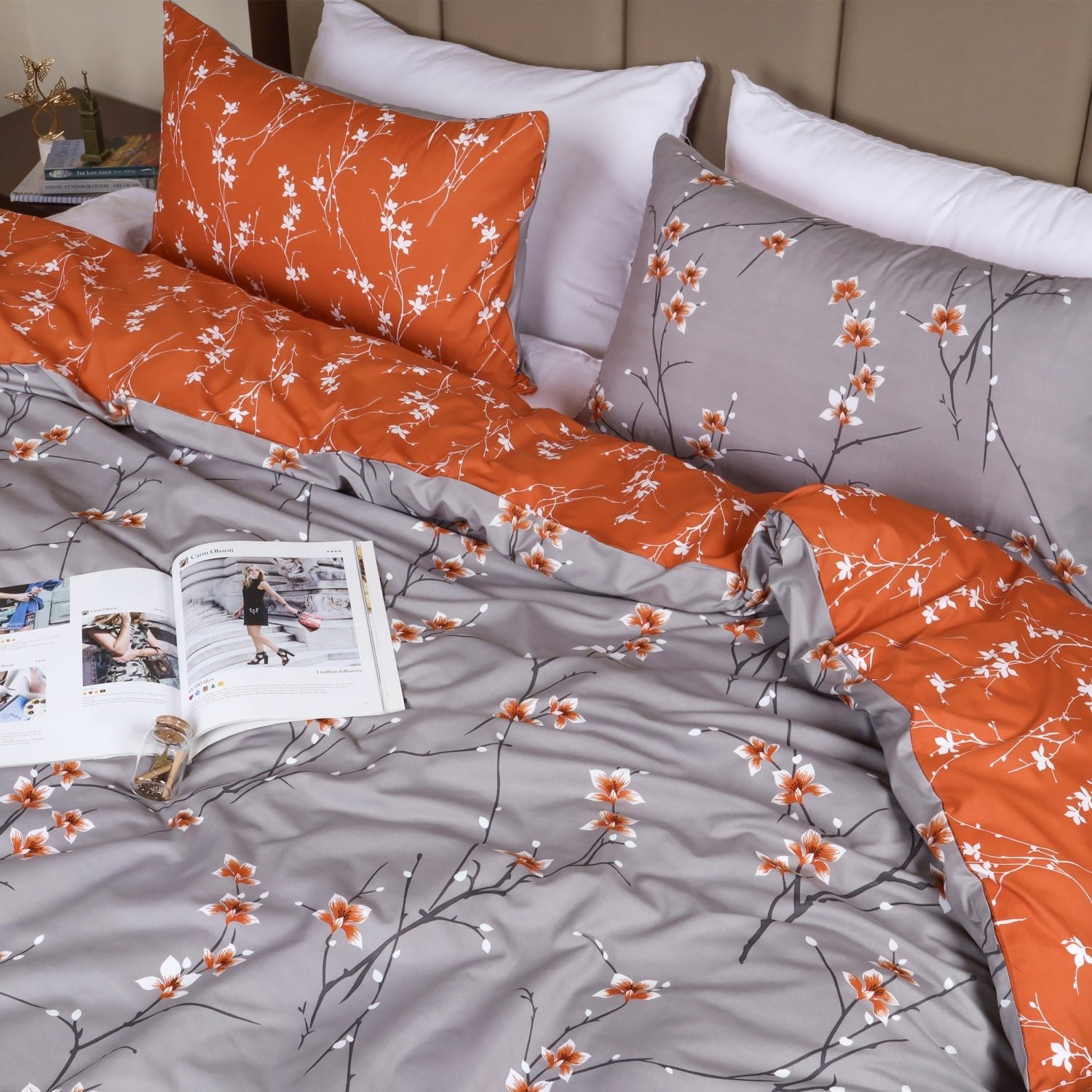 This microfiber grey and rust floral duvet cover set prints is a complete range that makes your bedroom stylish and glorifies it. This ochre blossom printed bedding feel-good fabric and high-quality duvet cover set come with coordinating pillow covers that have floral themes all over, making an ideal troupe to treat your bed. Internal ties and the closure makes sure that the duvet cover stays in place and prevents slipping. This 3 piece duvet cover set works well on all-season duvets. All you need to do is simply layer your duvet or comforter with this printed duvet cover set and create that peaceful serene place to sleep you have always dreamt of.