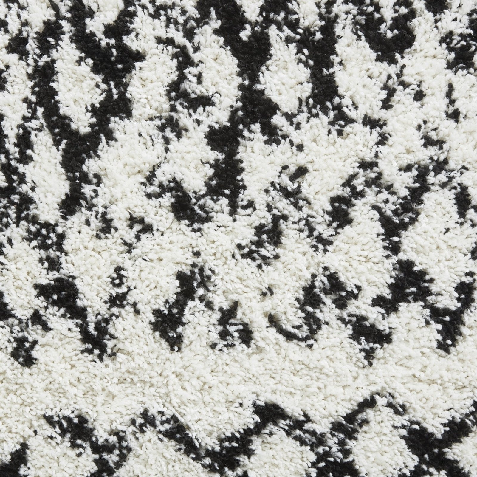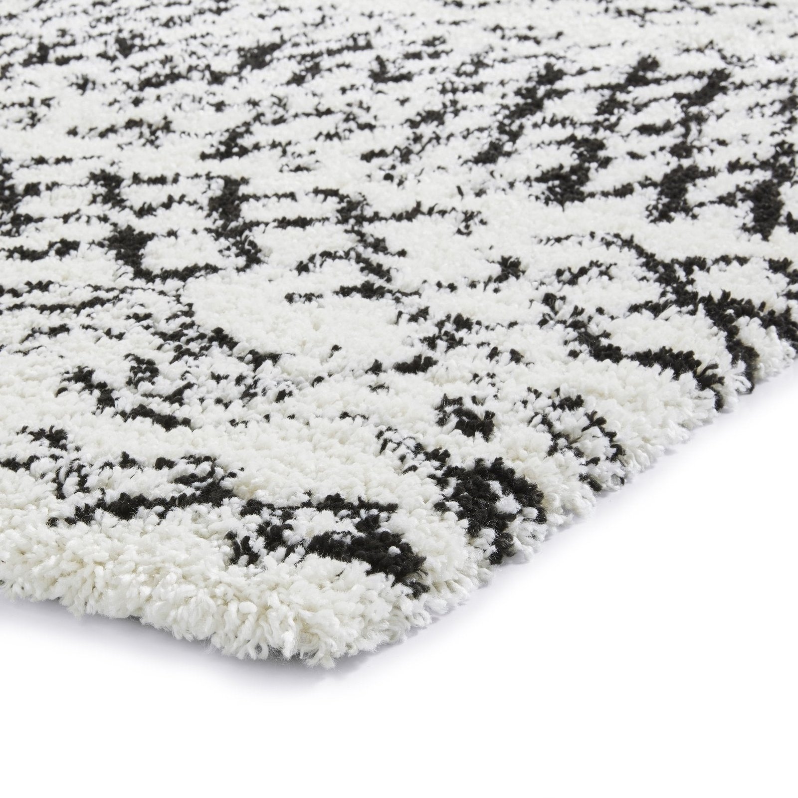 Experience ultimate luxury with the Scandi Berber G271 Rug in White Black. This stain-resistant Moroccan shaggy rug is a must-have for any sophisticated living room. With a size of 120×170, it is crafted from high-quality polypropylene and boasts a shaggy pile construction for an indulgent and comfortable feel. The heat set yarn and stain-resistant design ensure durability against heavy foot traffic and spills, making it perfect for busy households. Its stylish Moroccan-inspired black and white pattern adds a touch of modern art to any room, while the neutral background seamlessly integrates with various decor styles.