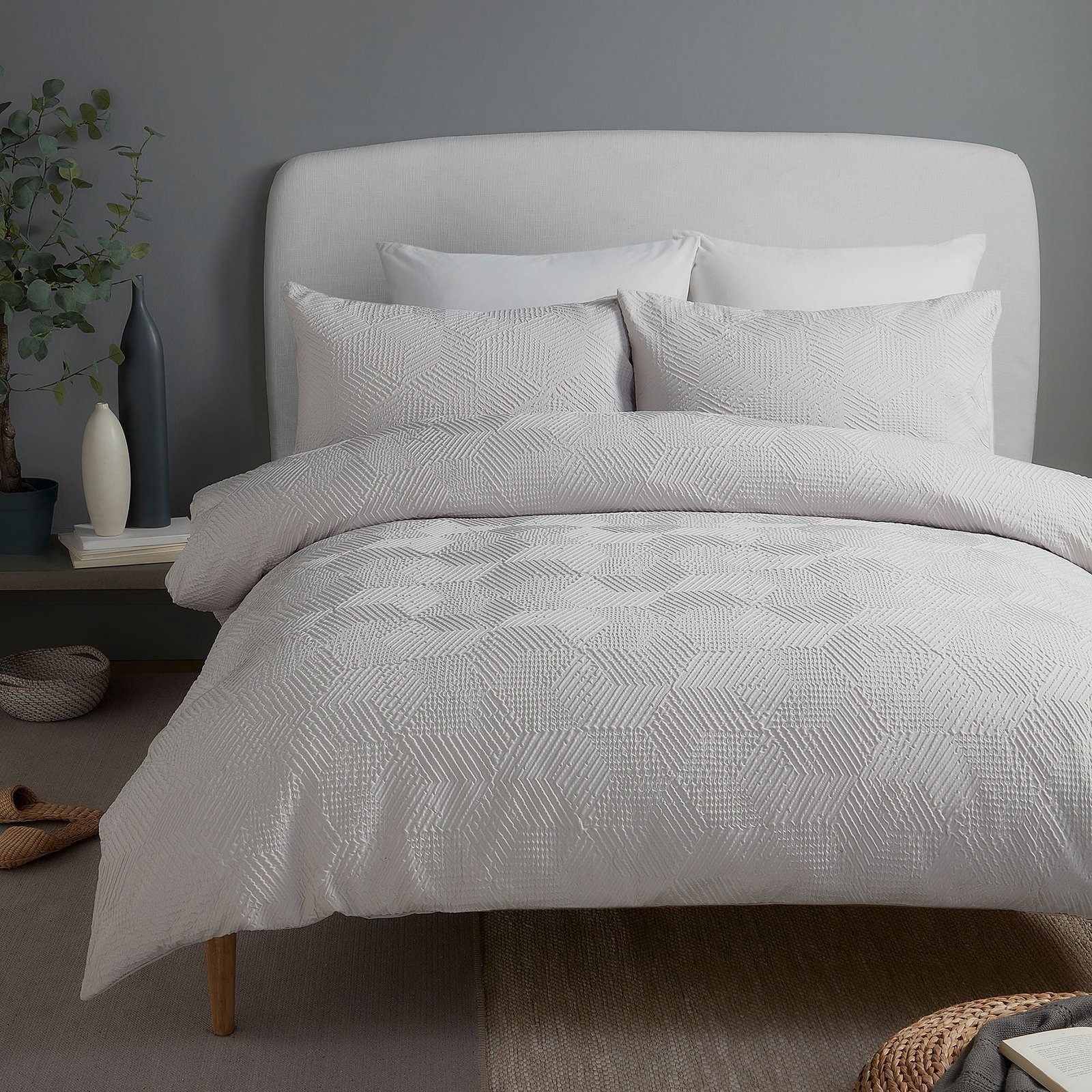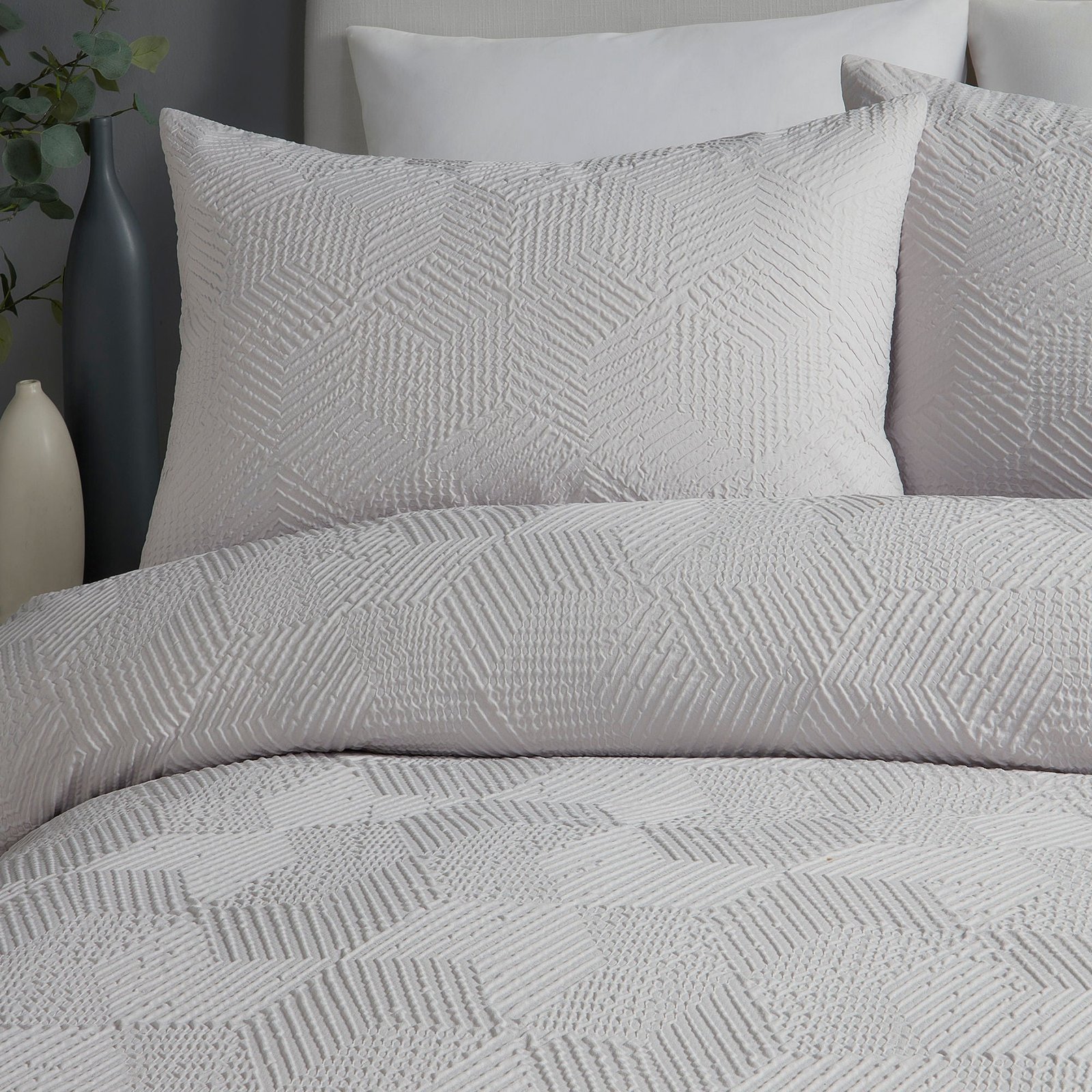 Serene Embossed Geo Duvet Cover Bedding Set Grey