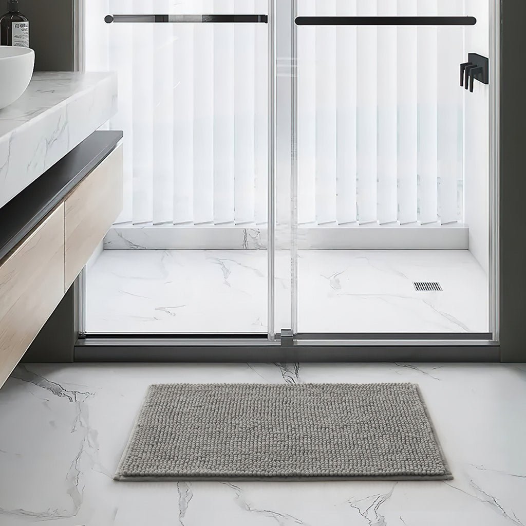 Perfect for those searching for a soft silver chenille bath mat in the UK, this piece combines practicality with understated elegance.