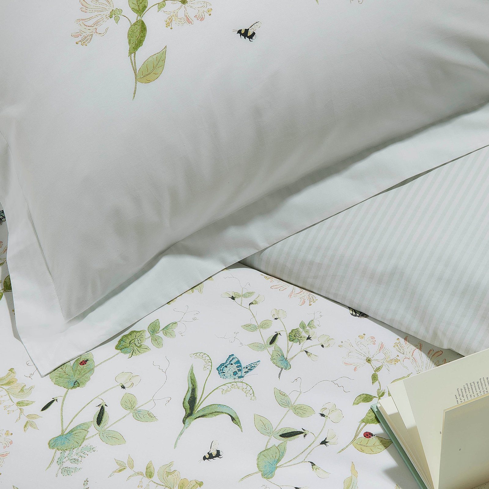 Elevate your bedroom decor with our Wild Floral Bedding Set. Combining elegance and timeless design, this set features delicate wildflower stems and lush greenery, beautifully illustrated by Sophie. The intricate depictions of butterflies, ladybirds, buzzing bees, and dragonflies add a touch of natural beauty, making this bedding a visually stunning masterpiece that will effortlessly enhance any room.