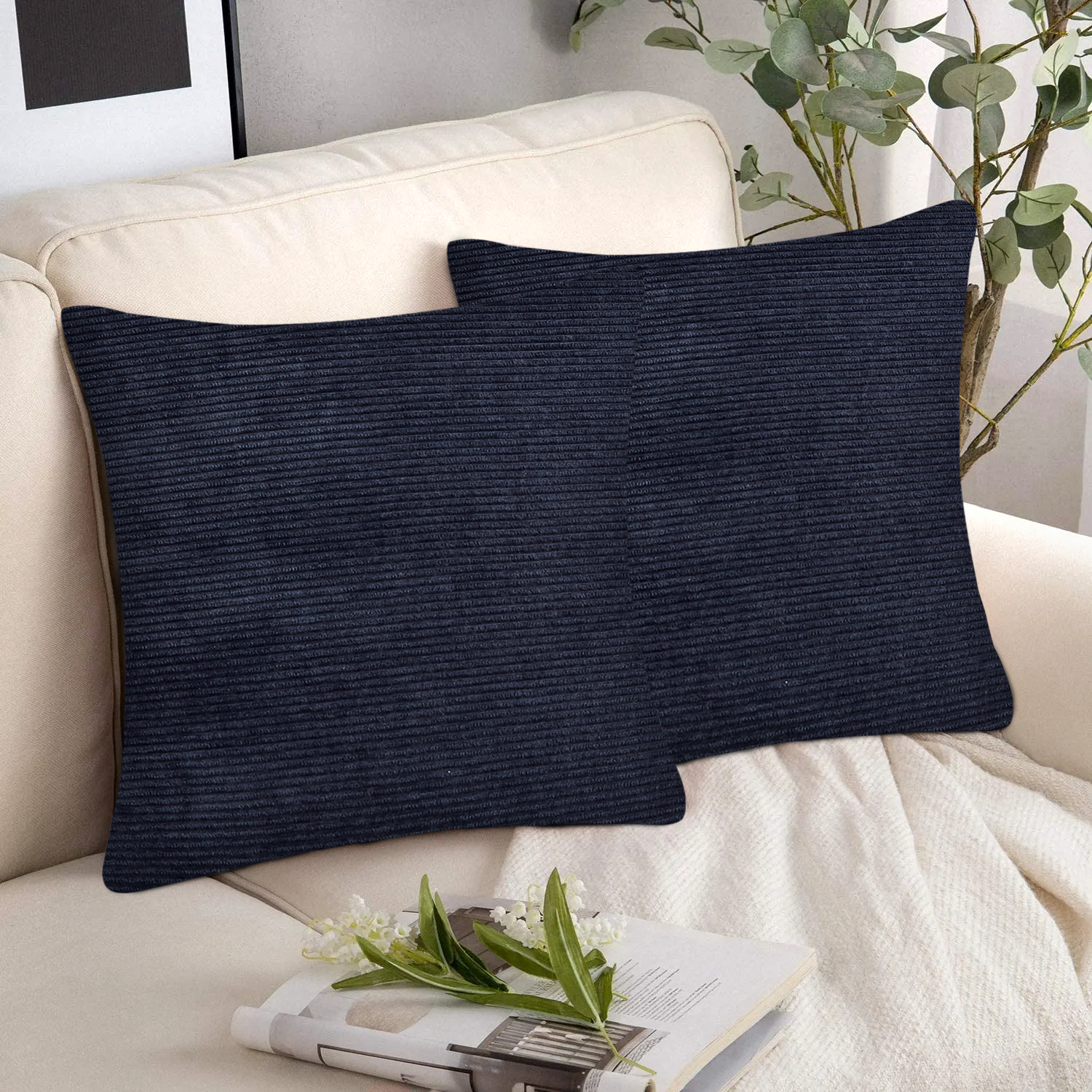 Velvet Corduroy Navy Cushion Covers