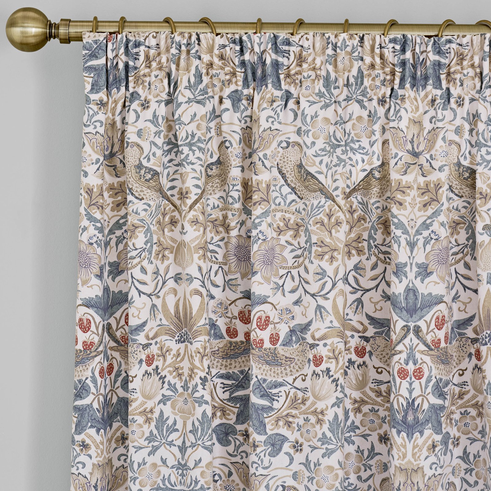 William Morris At Home Strawberry Thief Ready Made Pencil Pleat Curtains Hessian