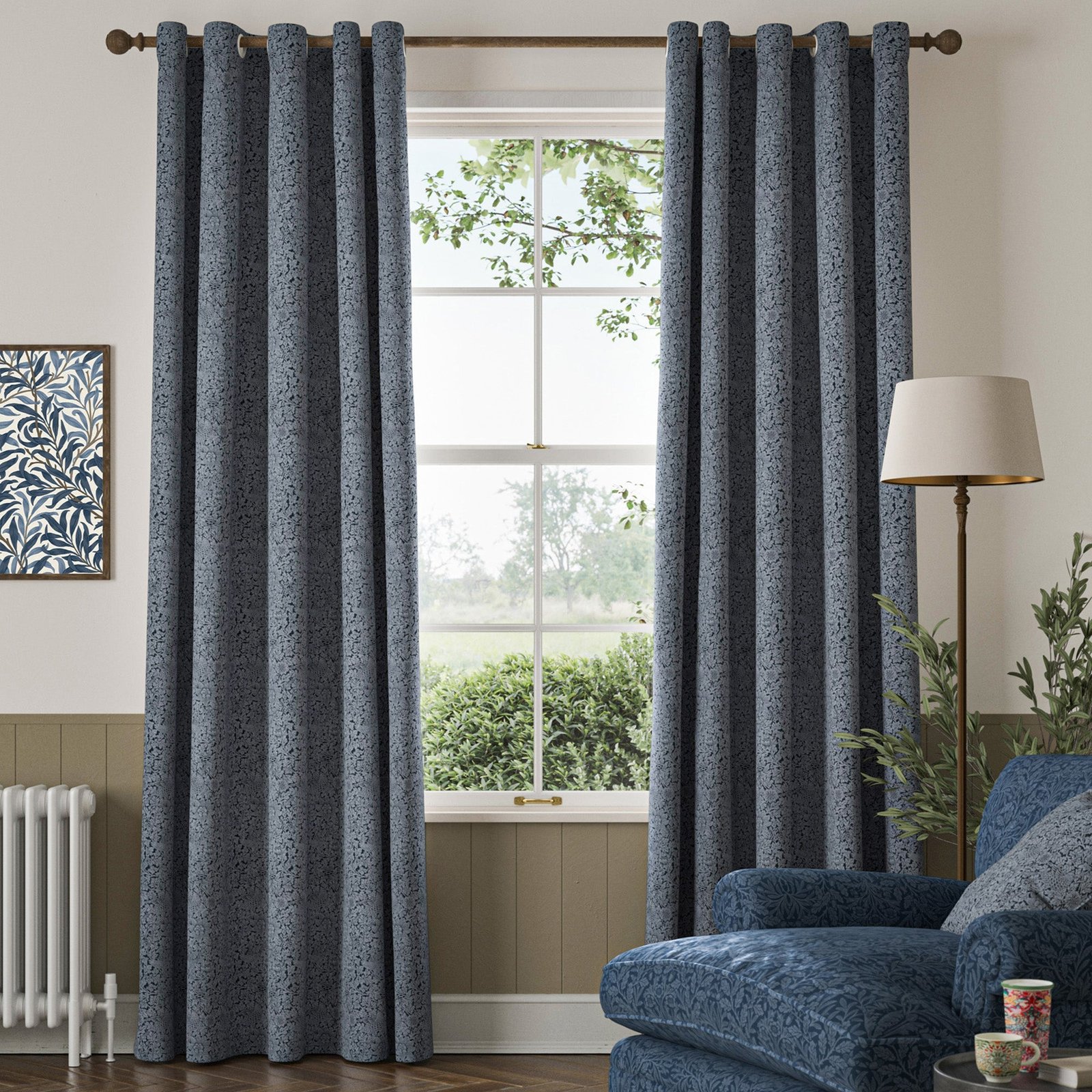 These made-to-measure curtains feature the iconic Bird and Anemone design from the William Morris collection, rendered in a sophisticated Midnight shade. Crafted from a premium blend of 42% polyester, 42% viscose, and 16% cotton, the fabric offers a balanced combination of durability, softness, and natural texture. The woven construction ensures a rich, detailed pattern that enhances any interior with timeless elegance. Custom tailored to your specifications, these curtains provide an expert finish that complements both traditional and contemporary décor while offering practical benefits such as light control and privacy.