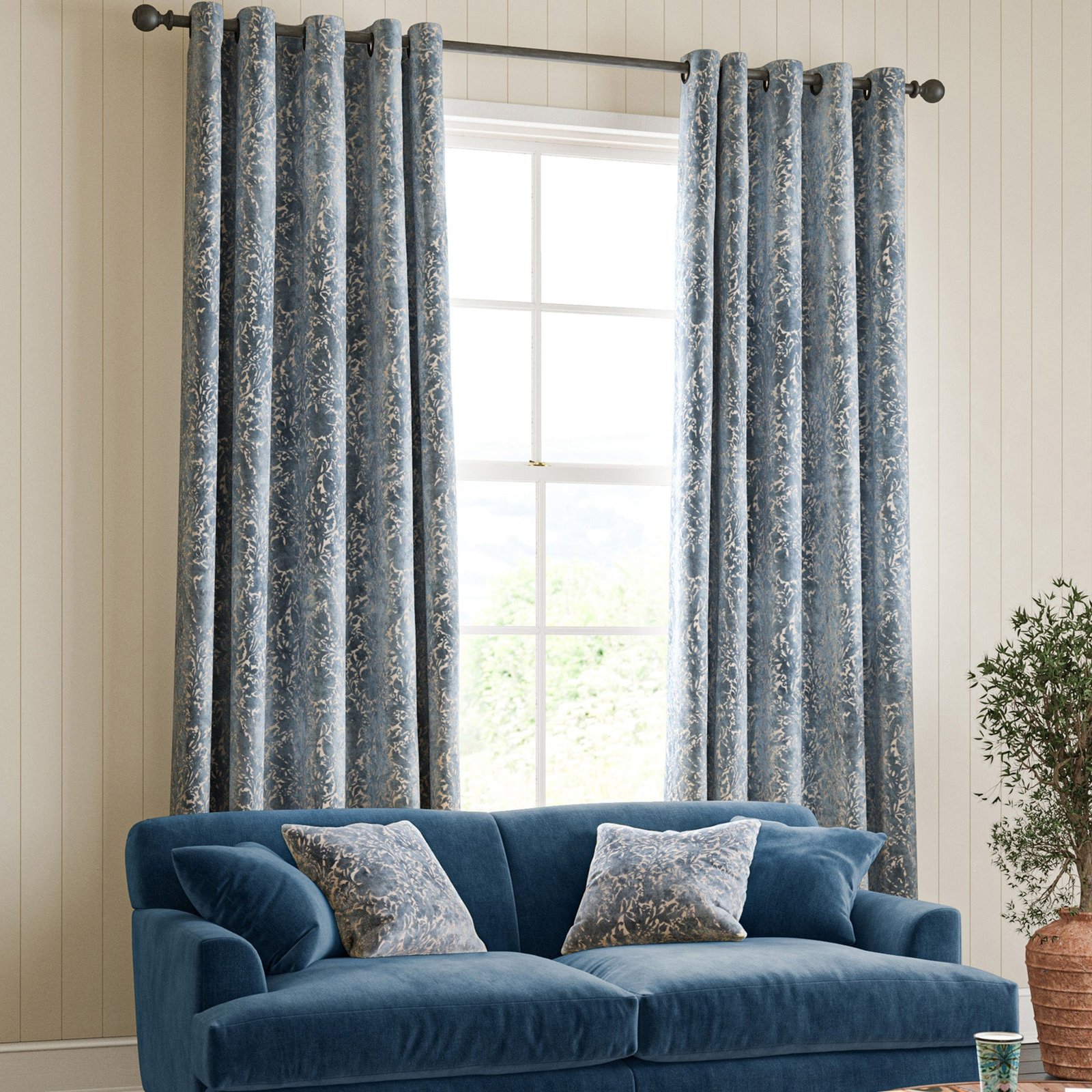 These William Morris Compton Silhouette Velvet curtains in Indigo are expertly crafted to your exact measurements, ensuring a perfect fit for your windows. Made from 100% polyester, this luxurious velvet fabric offers a rich texture and deep, vibrant colour that enhances any interior. Part of the renowned William Morris collection, these curtains combine timeless design with durable, easy-care material. Ideal for adding elegance and warmth to your living space, they provide excellent light control and privacy while showcasing classic craftsmanship. Tailored to your specifications, they bring both style and function to your home.