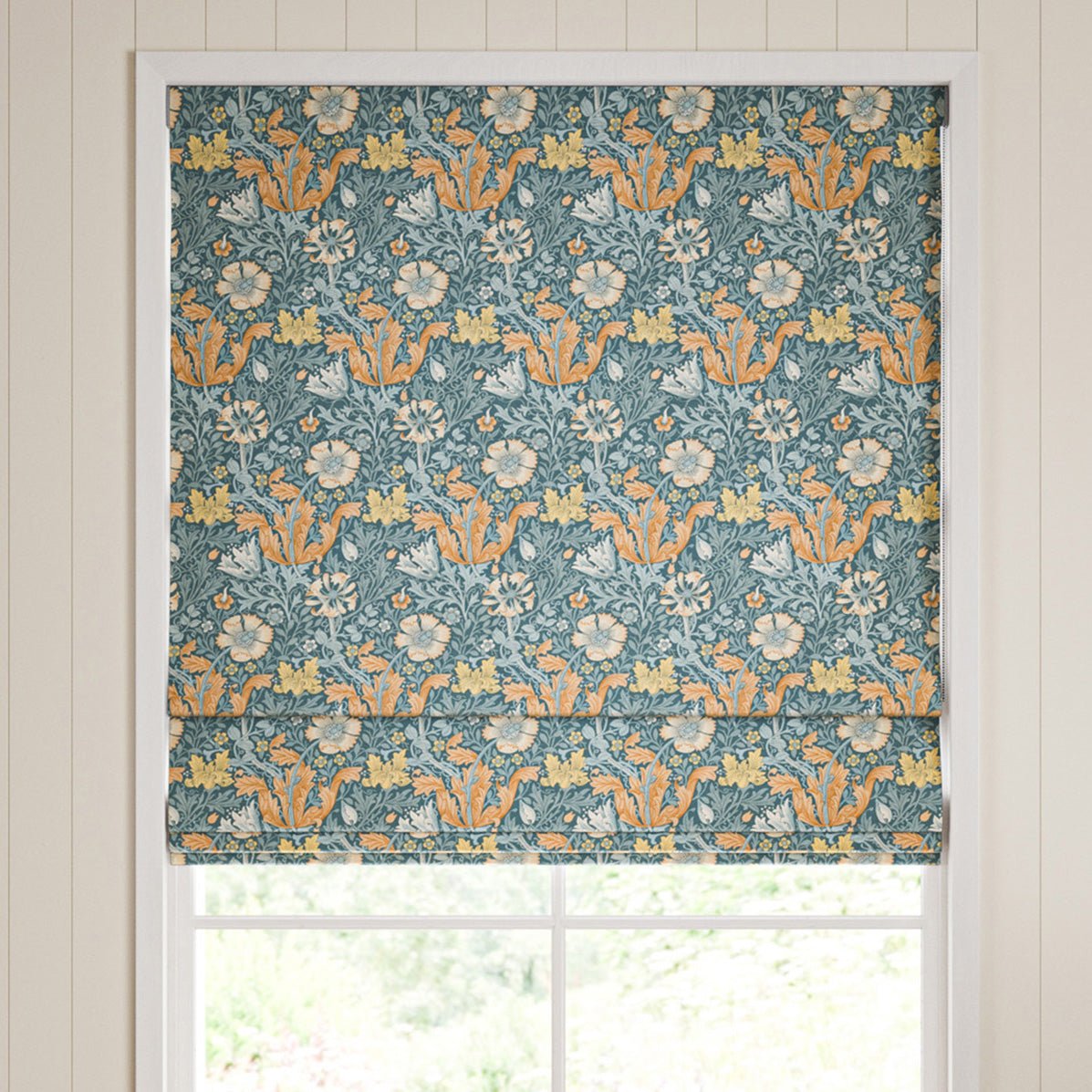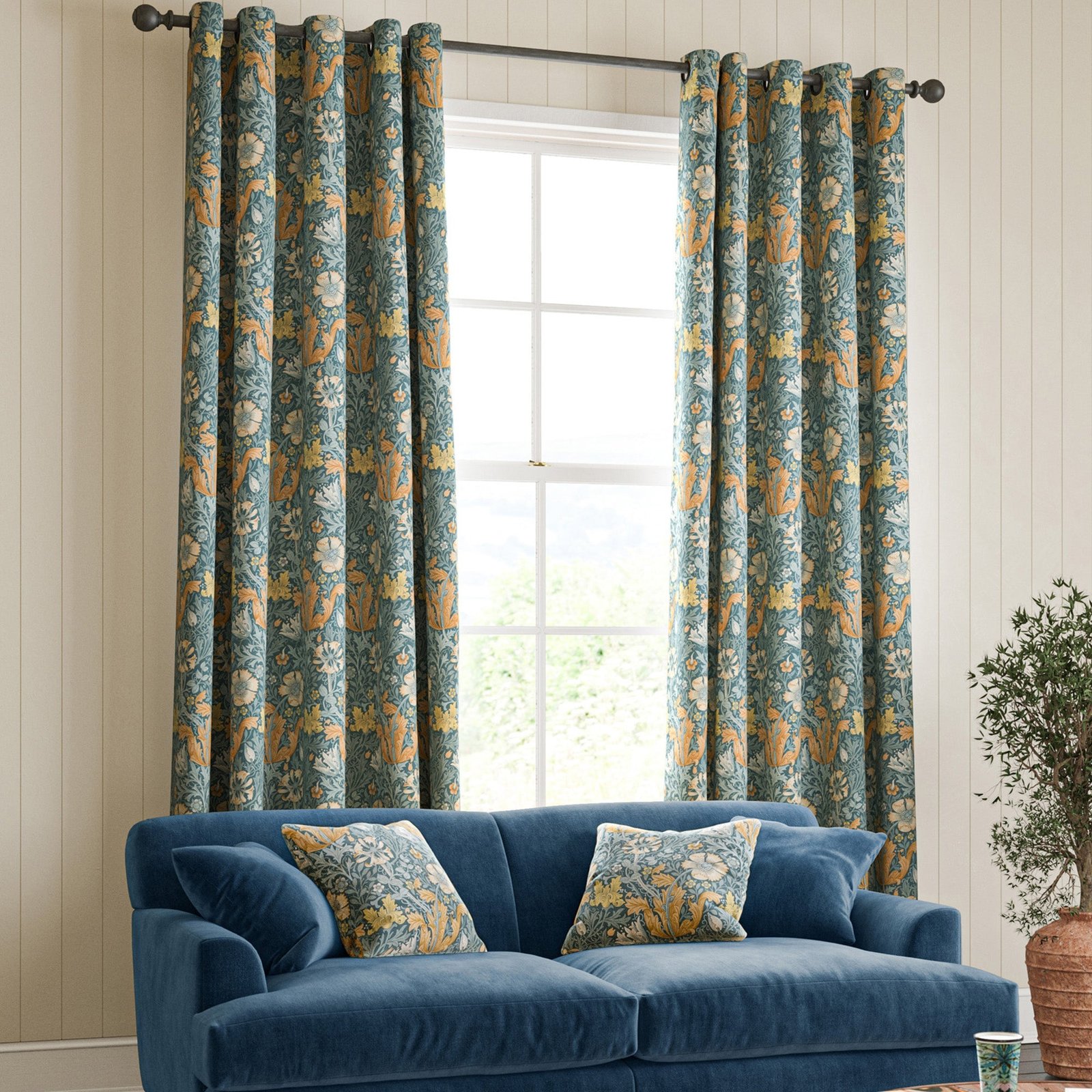 These made-to-measure curtains feature the Compton Velvet fabric in the elegant Bluebird shade, crafted from 100% polyester for durability and a luxurious feel. Part of the renowned William Morris collection, this fabric combines classic design with modern performance, offering a rich texture and vibrant colour that enhances any interior. Custom tailored to your specifications, these curtains provide a perfect fit and an expert finish, making them an ideal choice for adding timeless style and comfort to your living space.