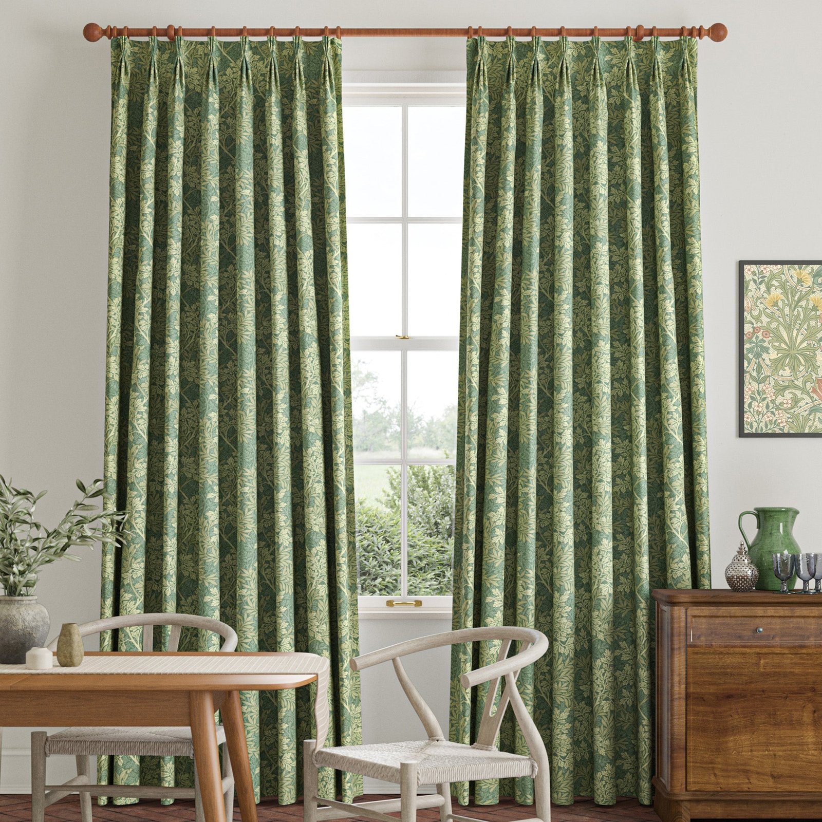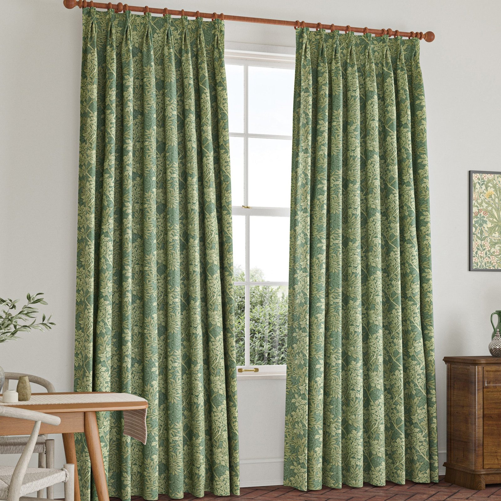 These made-to-measure curtains feature the iconic William Morris Foliage design in a fresh Apple shade, crafted from 100% cotton for a natural, breathable feel. The fabric’s rich heritage and detailed pattern bring timeless elegance to any room, while the custom sizing ensures a perfect fit for your windows. Ideal for adding a touch of classic charm and quality craftsmanship, these curtains combine aesthetic appeal with practical functionality, enhancing your interior with both style and comfort.