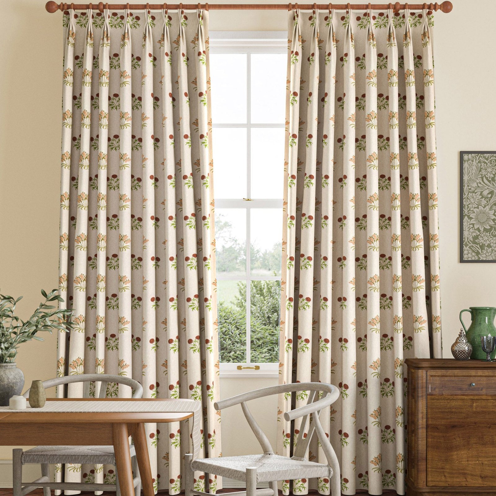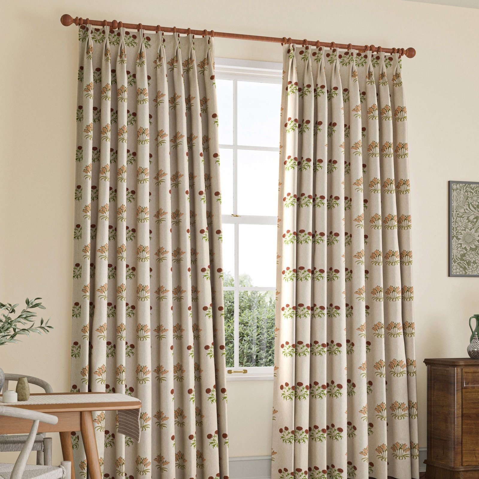 William Morris Lily Flower Embroidery Made to Measure Curtain Madder