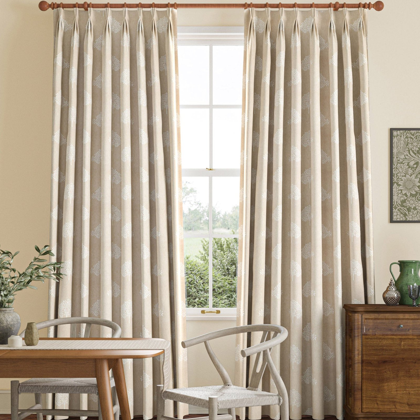 William Morris Marigold Tree Embroidery Made to Measure Curtain Chalk