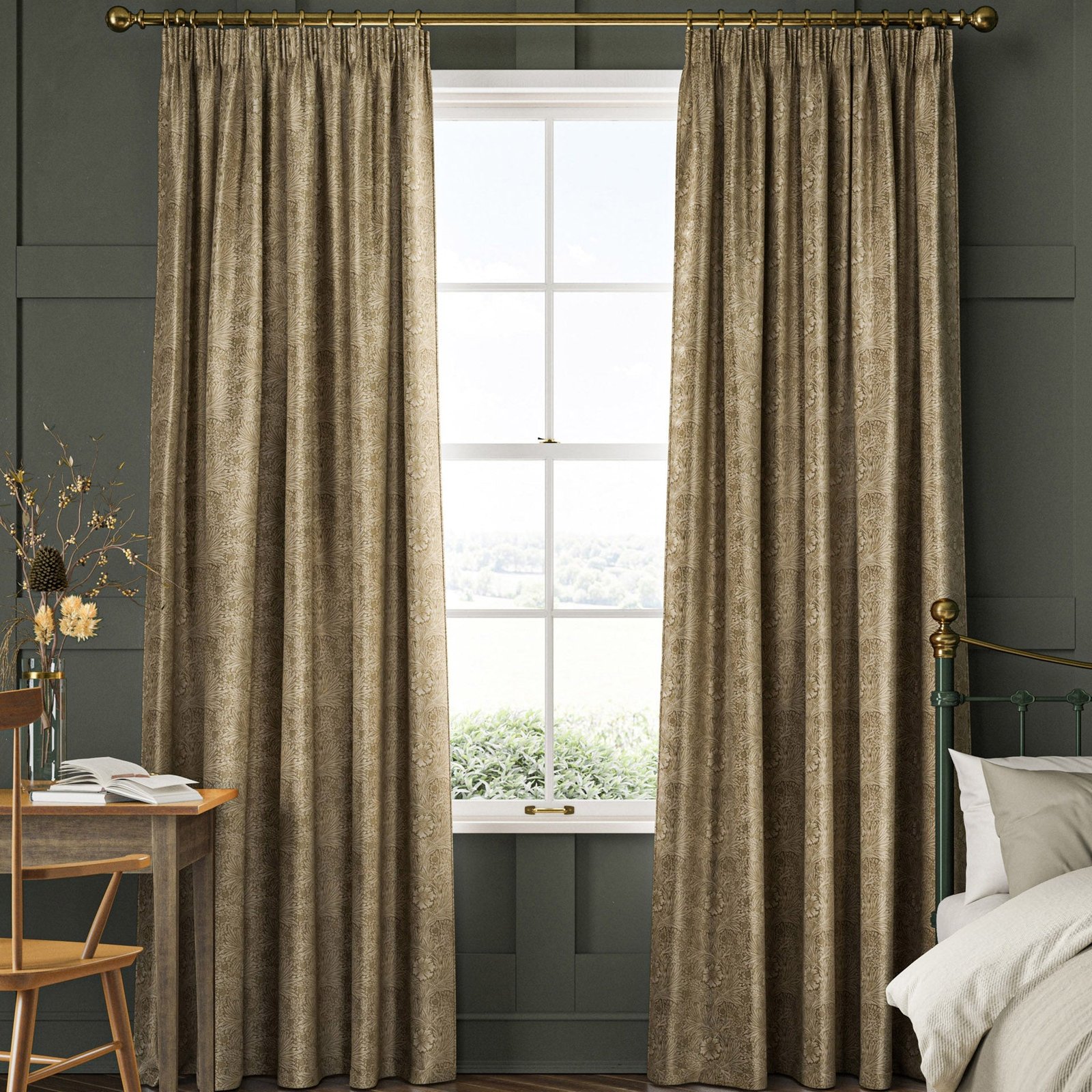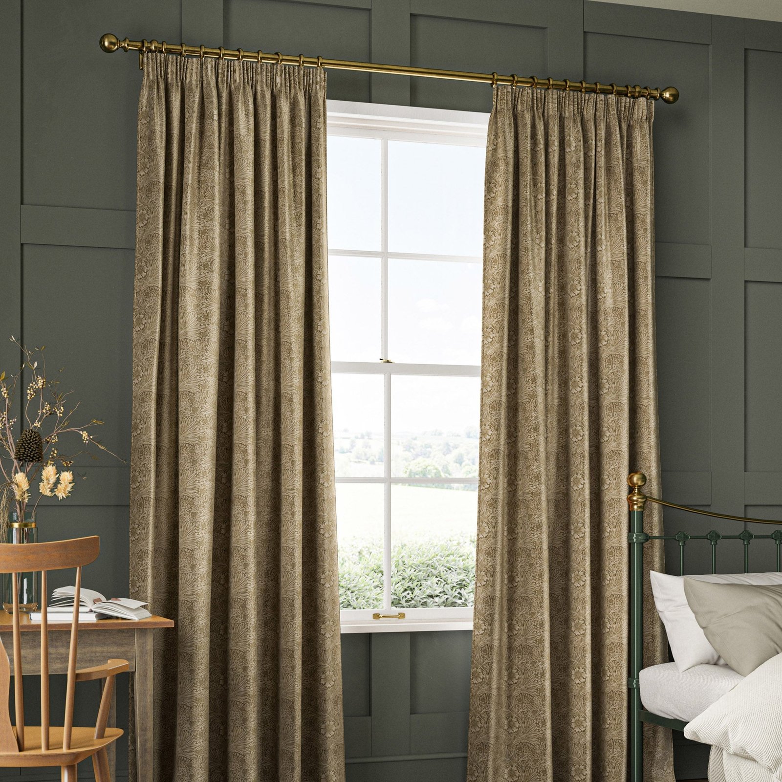 This timeless design features bold marigold flowers among willow-like leaves, set against a background of smaller foliage. The iconic two-colour pattern has been printed on velvet in an assortment of luxurious shades, inspired by the archives of the William Morris Gallery. Ideal for both drapery and upholstery, this beautiful fabric can be seamlessly incorporated throughout your home.