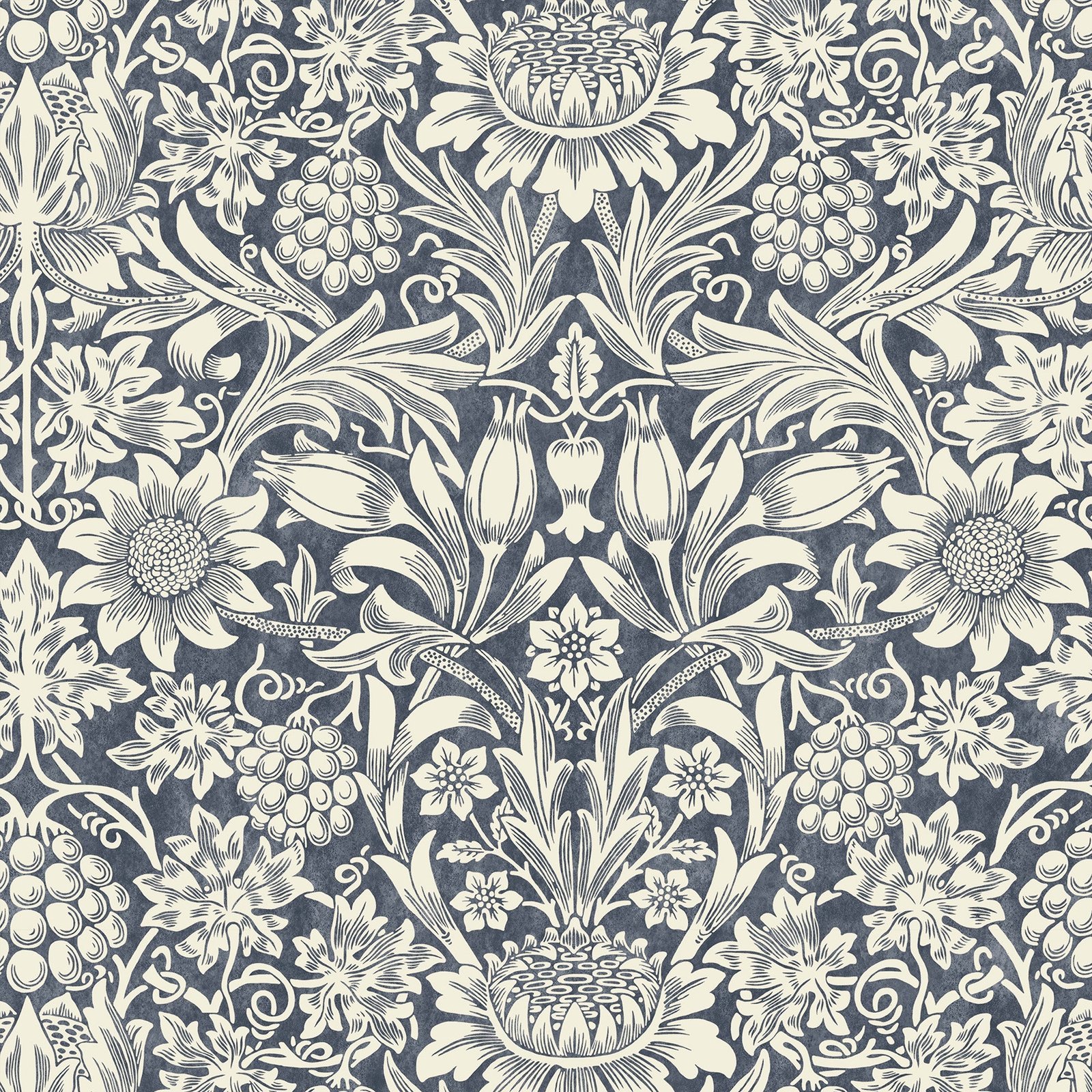 William Morris decorated his own garden at Kelmscott Manor with many of the same flowers he reproduced in his block-printed wallpaper patterns; sunflowers were among his favourites. Registered in 1879,the design features a symmetrical arrangement of sunflowers, tulips, and grapevines. This elegant design, printed on cotton with fresh colours inspired by the archives, brings a modern interpretation to this historic William Morris pattern.