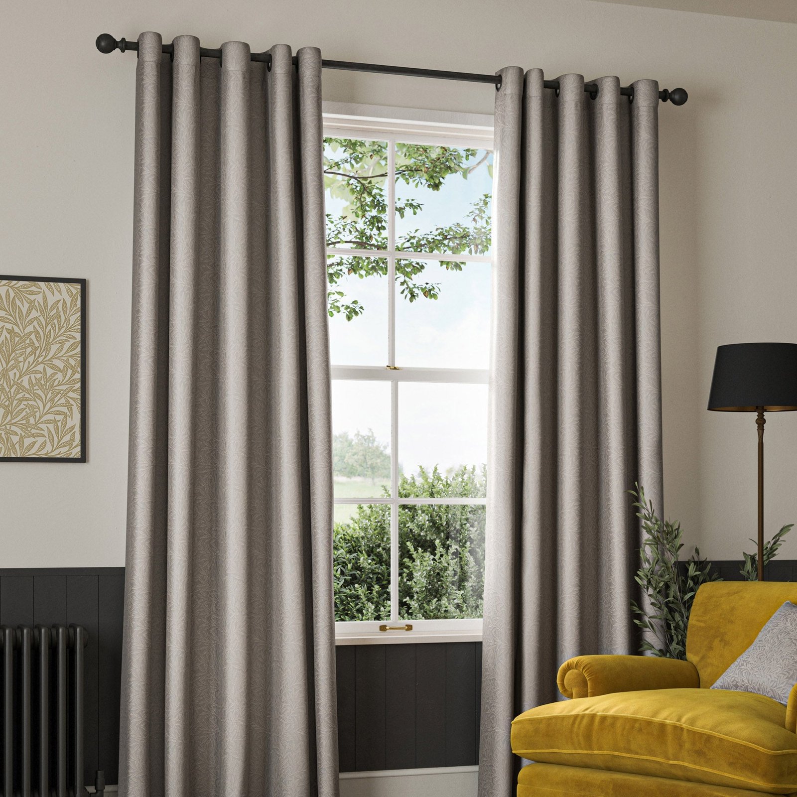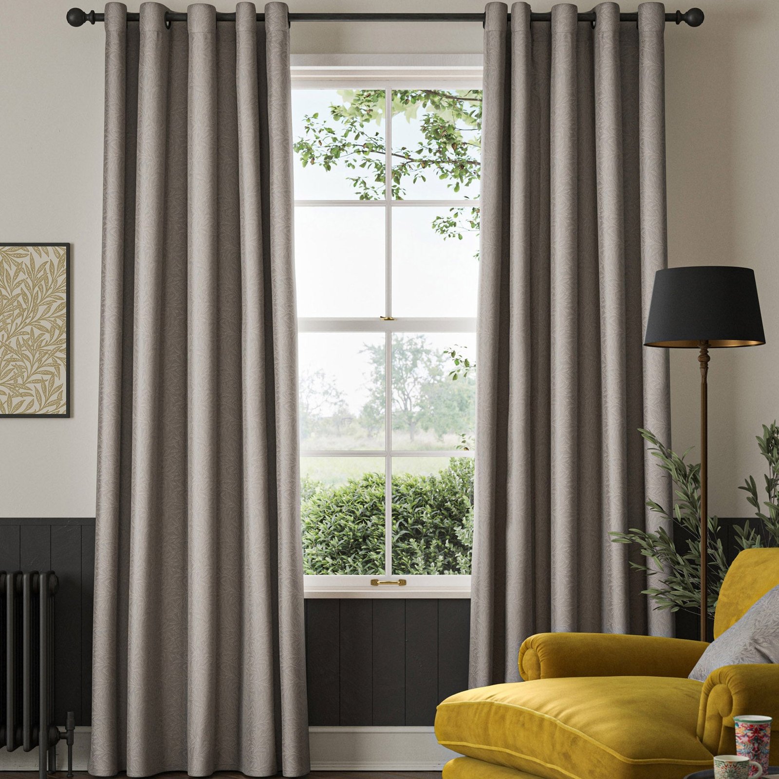 Willow was designed by William Morris in 1874 and was produced as a hand-block-printed wallpaper. This stunning satin jacquard depicts intwined willow leaves in a flowing upward movement. The opulent satin weave in the ground contrasts against the shimmering textured weave within the leaves. The curated mix of textures and soft sheen brings added elegance to this iconic William Morris design. Willow is also available as a single colour print on cotton.