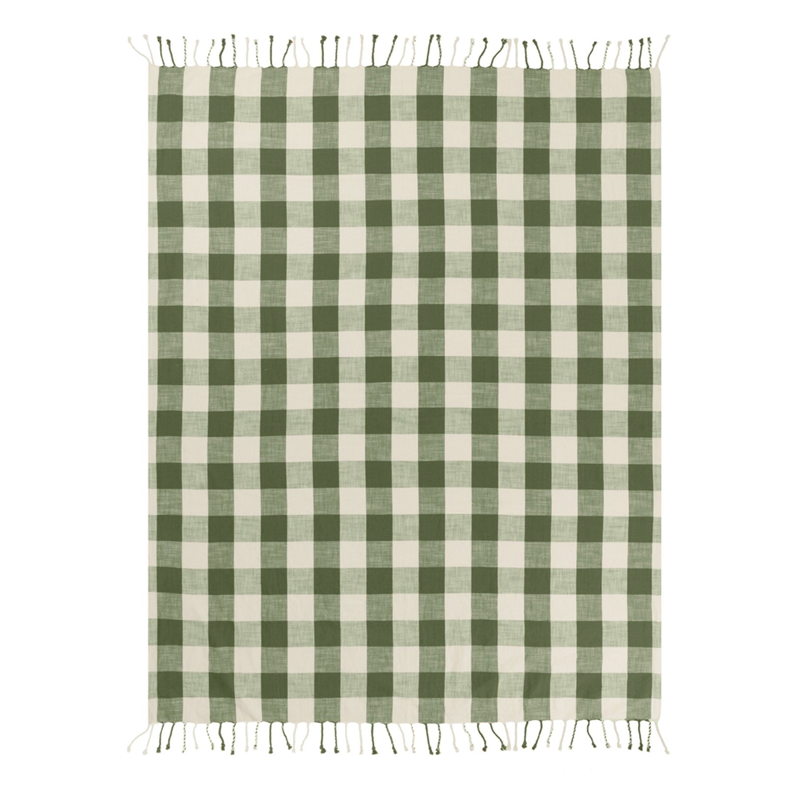 Yard Chesil Check Tasselled Cotton 130cm x 170cm Throw Moss