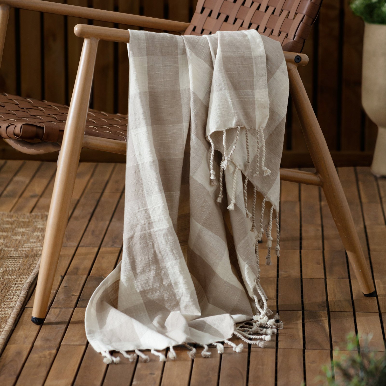 Yard Chesil Check Tasselled Cotton 130cm x 170cm Throw Natural