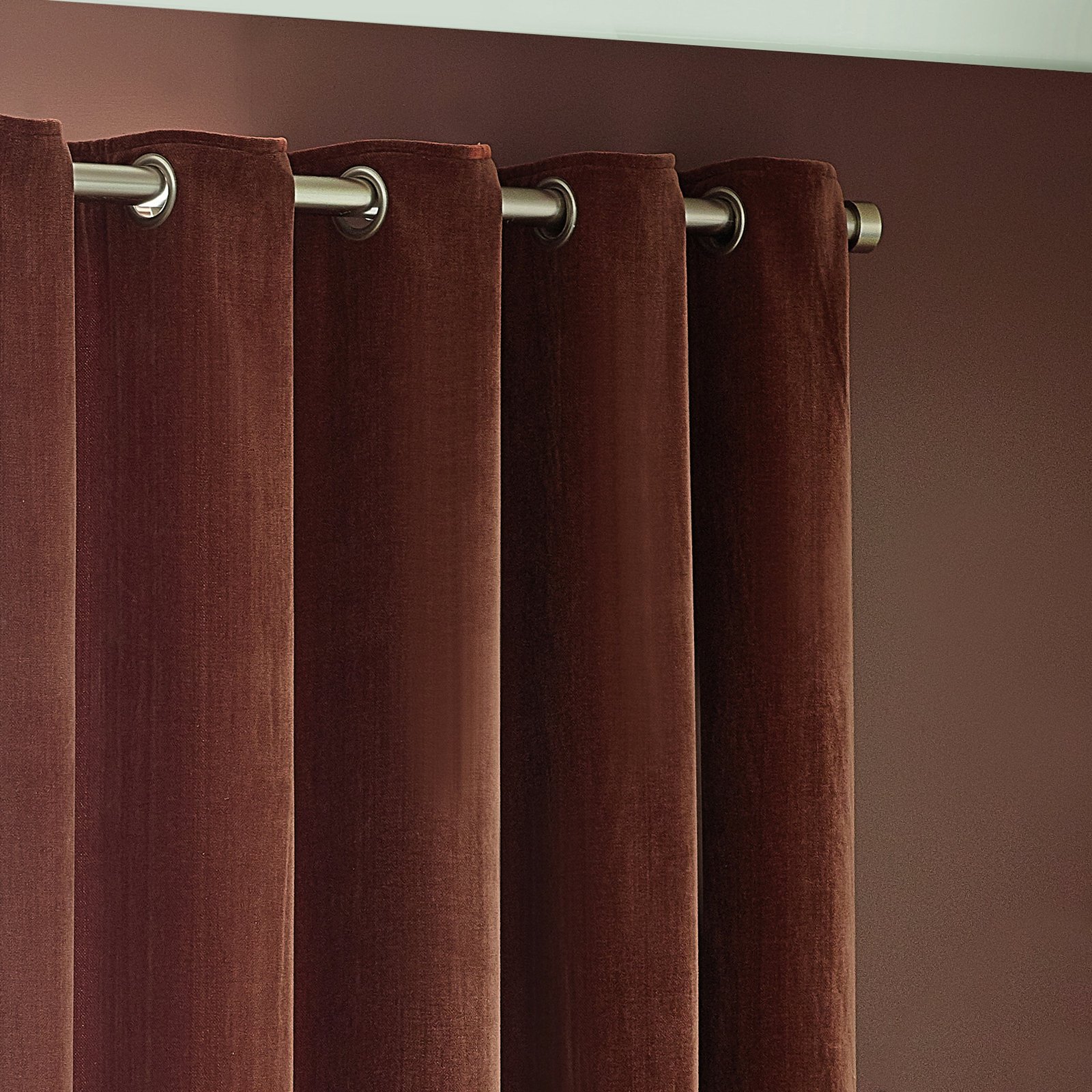 Yard Heavy Chenille Velvet Ready Made Eyelet Curtains Nutmeg